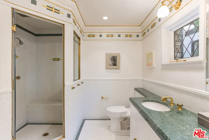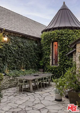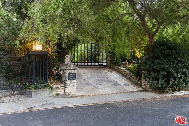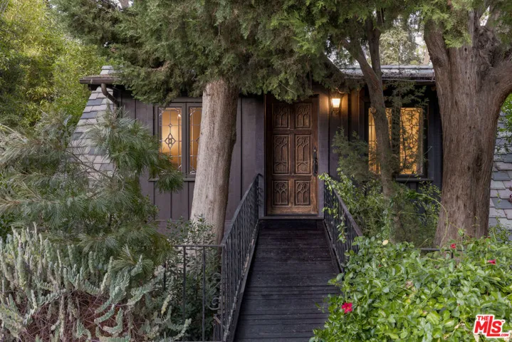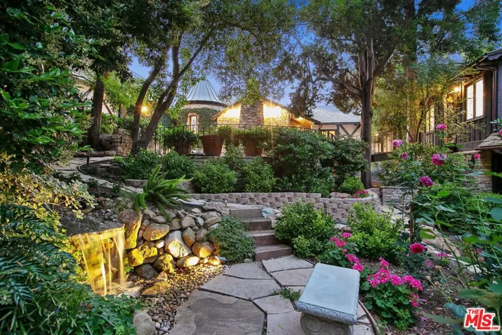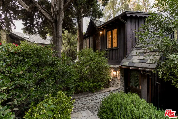 Secluded behind wrought iron gates, this historic Woodland Hills retreat revisits a magical era in the days of Hollywood. Originally owned by director Michael Curtiz, this private escape has housed some of Hollywood’s biggest names. The original owner meticulously emulated the design from an English Cottswald cottage and imported materials and trees to build this retreat. The current owner has expanded on the property staying true to the architecture that makes it so appealing. Stepping into this one of a kind residence you will be surrounded by the elegant yet rustic environment this homes provides. From the exposed beam ceilings, oak flooring, iron and brass railings and stunning hand-made windows throughout. Significant recent upgrades and additions have been done in past few years adding a peaceful guest bedroom wing with 2 large en-suite bedrooms. A tastefully reimagined chefs kitchen was recently built with premium appliances and custom cabinetry. Boasting room for all your loved ones and guests, the property boasts Two detached guest quarters with its owns systems. One of which is perfect for home office, den or guest suite with beautiful vaulted ceilings and double French doors overlooking the impressive outdoors. Step outside to the serene grounds and enjoy a peaceful relationship with nature boasting a sweeping stream, waterfalls, terraced patios and a custom built workshop! Truly a one of one property offering unrivaled privacy and a magical environment to live and thrive.