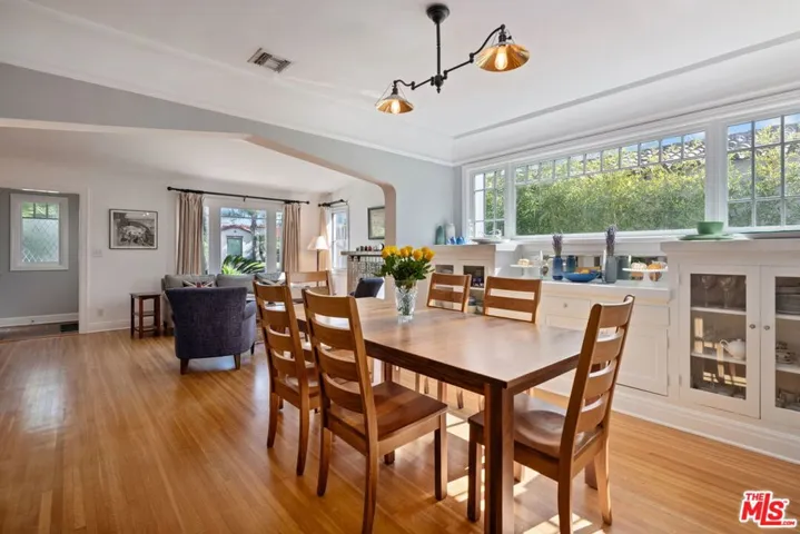 Beautiful 3 bed/2 bath + great room expanded Traditional with the perfect floor plan on a spacious 6,759sf lot. The entry opens to living room with vaulted ceiling, original Batchelder-tiled fireplace and large archway opening to dining room with built-ins and large window overlooking greenery. Spacious kitchen with island and breakfast bar, vintage gas range/oven, tiled countertops and an abundance of cabinetry all opening to family/great room with vaulted ceilings, recessed lighting and French doors to back deck with veranda and grassy backyard, newly hardscape backyard and gated driveway. 2 bedrooms with crown molding and built-out closets and completely remodeled marble-finished full bathroom in hallway and expanded primary suite with French doors to deck and backyard and 2 large closets. Primary bathroom with dual basins and updated tiled shower. Additional features include hardwood and tile flooring, dual-zoned central ac/heat, garage is partially drywalled and currently used as office/gym. Close proximity to Pico Blvd. retail and restaurants, Rancho Park golf/park and recreation center, Westfield Century City Mall, UCLA and Beverly Hills. Located in the highly coveted Westwood Charter School District.