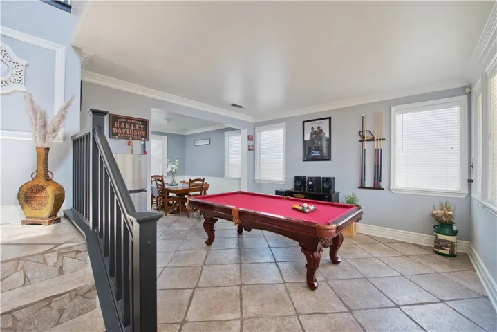 Stunning and spacious home with everything you’ve been looking for! Features include beautiful tile floors, a remodeled open-concept kitchen that flows into a huge family and dining room-perfect for entertaining. Downstairs offers a private guest bedroom with full bath and a separate laundry room. Upstairs features an oversized master suite with luxurious bath, plus three additional large bedrooms and another full bath. Enjoy the expansive backyard with a concrete patio, ideal for gatherings. 3 car garage with ample storage. Bonus: pool table and washer and dryer included in the sale! Located in a peaceful neighborhood with a park like front lawn– perfect for relaxing while the kids play! Conveniently close to freeways, shopping, and dining and more. This home truly has it all– don’t miss it!