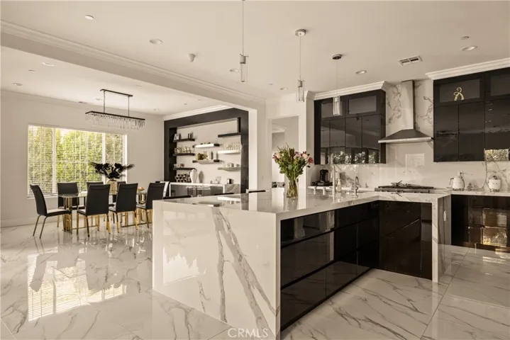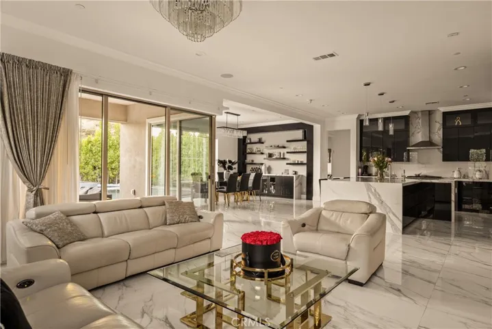 Welcome to this exquisite custom estate in the prestigious Sterling Ranch community of West Hills. Set on a quiet street, this modern masterpiece offers over 4,000 sq ft of refined living space with 5 bedrooms and 5.5 bathrooms on an expansive 11,006 sq ft lot. Designed for effortless California living, the open-concept floor plan features soaring ceilings, sleek porcelain tile floors, and walls of glass that flood the interiors with natural light. The spacious family room centers around a striking fireplace and pocket sliders that open to the backyard, creating a seamless indoor-outdoor flow. The gourmet kitchen is a showstopper, complete with porcelain countertops, premium KitchenAid appliances, a peninsula island with seating, a walk-in pantry, and an adjoining wet bar and dining area perfect for entertaining. A formal dining room adds elegance for special occasions. An attached ADU (or two-bedroom suite) with a private bath offers versatility for guests, family, or a home office. Upstairs, four en-suite bedrooms include a bright loft for lounging or work. The luxurious primary suite features dual walk-in closets, a vanity area, and a spa-inspired bathroom with dual vanities, a soaking tub, two showers, and private water closets. Step outside to your own resort-style oasis featuring a covered patio, Pebble Tec zero-edge pool and spa, built-in BBQ, pizza oven, and refrigerator—surrounded by lush landscaping and evening lighting for perfect ambiance. Conveniently located near top-rated schools, scenic hiking trails, and premier shopping and dining at The Village, Calabasas Commons, and the Fallbrook Center, with easy freeway access to Malibu’s beaches and Warner Center.