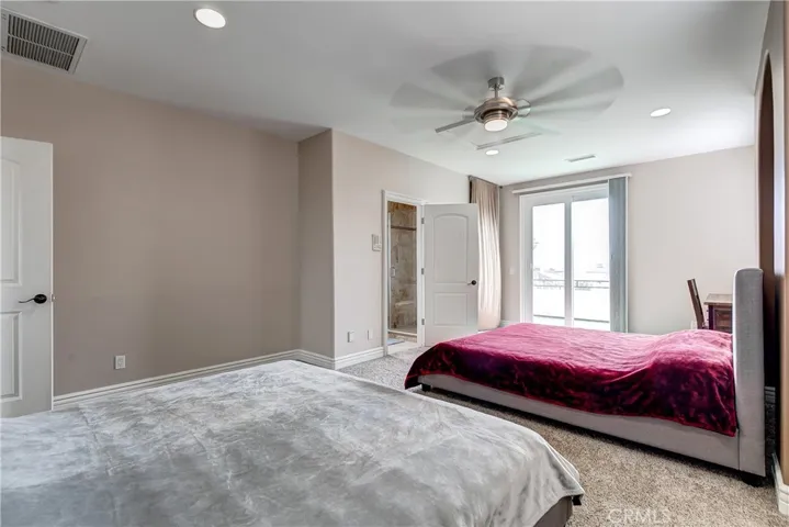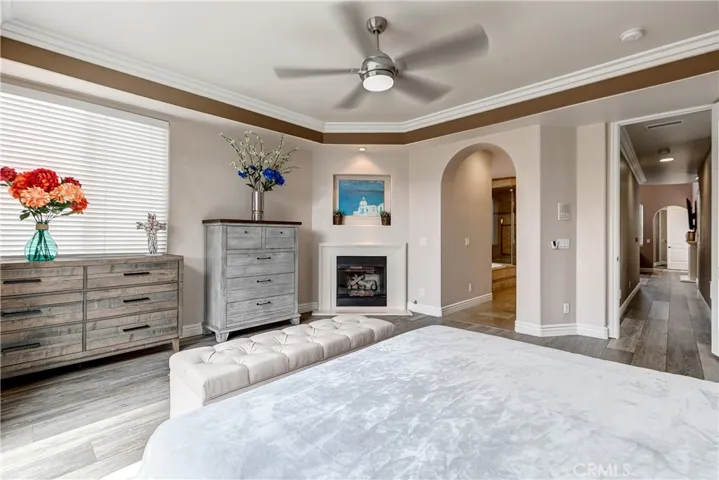 The master bedroom is a haven of comfort, with a walk-in closet, an inviting fireplace, and a profusion of natural light. The en-suite bathroom, recently upgraded, features a separate shower and bathtub, double sink, and marble flooring. The other bedrooms are equally pleasing, featuring a jack and jill bathroom on the second floor and a private bath on the third floor, which also offers a breathtaking view of the beach and air shows from its balcony.