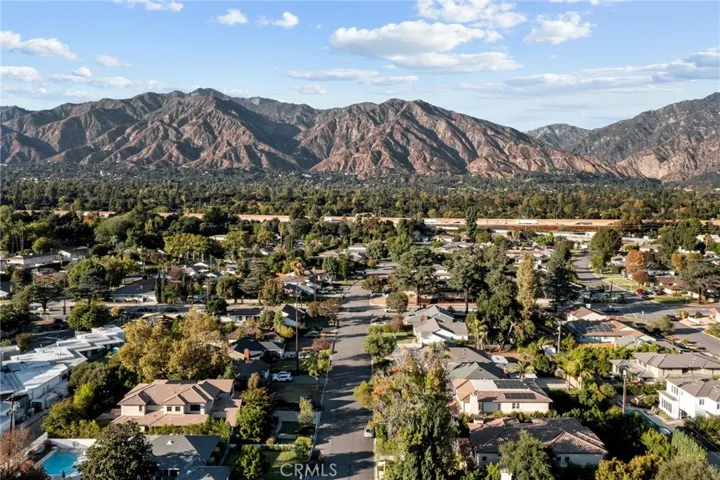 Spacious 6-bedroom home with dual primary suites, paid solar, mountain views, and Arcadia schools! As you enter through the double doors, you’ll be greeted by a formal entry with high ceilings, a stunning marble foyer with a custom medallion and a very welcoming feeling. The large living room features cozy carpet, fireplace, and recessed lighting—perfect for relaxing or entertaining. A formal dining room for hosting large gatherings. Brand new sliding glass doors help keep things quiet and energy efficient. The custom kitchen is a chef’s dream, with an eat-in island, dining area, GE appliances, a single oven with microwave above, trash compactor, tile flooring, and plenty of storage. The kitchen sink has its own water filtration system. This home offers real hardwood and carpet flooring, ceiling fans in all rooms, built-in speakers, and a security system with a front yard camera for peace of mind. It also has a paid-off solar system, a tankless water heater, and dual-zoned HVAC…each bedroom has its own temperature control for convenience. There are three bedrooms downstairs, including a primary bedroom with a remodeled Jacuzzi bath. Two more remodeled bathrooms are also on the main floor. Upstairs you’ll find three additional bedrooms, including a second primary bedroom with another remodeled Jacuzzi bath, and a hall bath. The upstairs primary bedroom also offers a balcony to enjoy the gorgeous view of the mountains. The inside laundry room includes the washer and dryer (watch your step when entering), and the home features an interior fire sprinkler system for added safety. Outside, enjoy the backyard oasis with a deck, custom pavered patio, artificial turf, and lush landscaping—perfect for low-maintenance outdoor living. Award winning Arcadia Schools and a great location – this beautiful home won’t last!