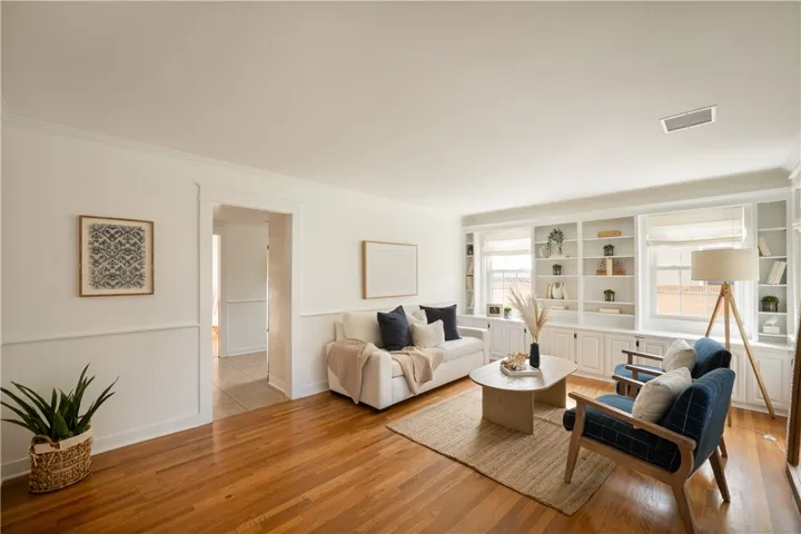 Here’s a fantastic opportunity in the lovely Lakewood Village area of Long Beach that offers a picturesque single family on a generously-sized, almost 8,000 sq foot lot. Stepping through the front door, the home’s first impression is an enchanting living room with wainscoting, crown moldings, and a built-in bookcase. It’s a room that envelopes you in its warmth, providing a serene space to drink a morning cup of joe or curl up on a sofa to read a good book or enjoy the company of friends. Just off the living room are three charming bedrooms and a full bathroom on one side, and the kitchen on the other. The kitchen boasts stainless steel appliances, granite counters, and ample cabinetry. But that’s not all. There is a spacious family room with brick fireplace that just screams for a big screen TV, comfy sectional, and offers the perfect setting for some serious binge-worthy TV. Step through the sliding glass door to a large, covered patio that overlooks the professionally landscaped backyard. And not to bury the lead, but let’s talk about the endless potential of the 4-car detached garage. Imagine all the things you could do with this space: ADU, workshop, home office, game room, “mancave”, “she-shed”… oh and yeah park four cars. Located on a pretty street, this home is nestled in this charming neighborhood and yet is just down the street from Home Depot and Costco. Mic drop. And a quick shout out to Veterans: there is currently an assumable loan on the property at 2.25%. Inquire for details.