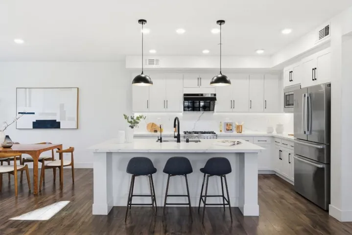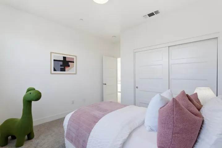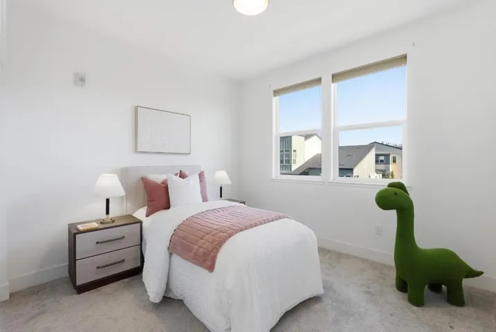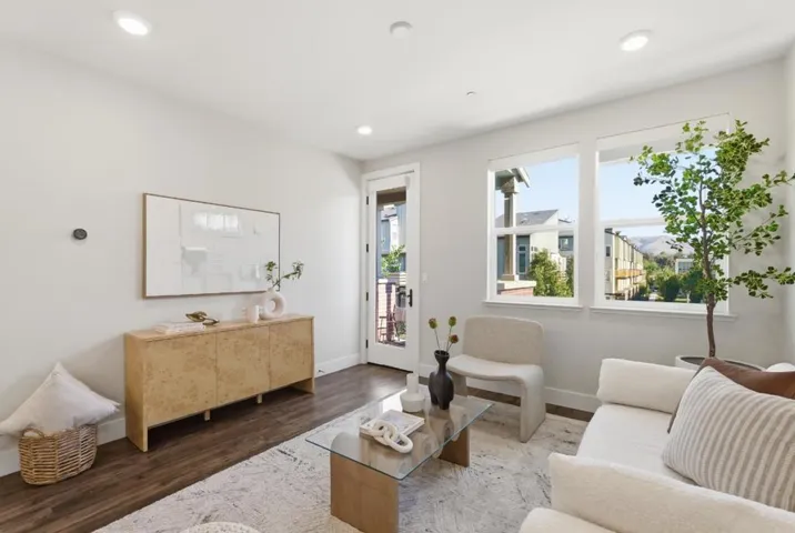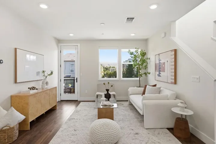 Discover this designer inspired corner townhouse with stunning mountain views. This home combines contemporary design, premium finishes, and unbeatable convenience, making it perfect for both homeowners and investors. The gourmet kitchen is a chefs dream, featuring quartz countertops, full-tile backsplash, Bertazzoni gas range, Fontie range hood, Bosch refrigerator and dishwasher, Kraus sink, smart touch faucet, and water purifier. One bedroom on the main living level ideal for guests or rental flexibility plus three additional bedrooms upstairs. Bedroom are outfitted with ceiling lights, while Nest thermostats provide separate climate control in each level. The primary suite includes a spa-inspired bathroom with a smart toilet for ultimate comfort. Additional highlights include a fully finished garage with painted walls, Tesla charger, water softener, and multiple storage racks. Residents enjoy a vibrant community with amenities such as a BBQ area, dog park, and kids playground. Step outside and stroll to Bills Café for brunch or catch Google, Meta, and Apple shuttle buses for work. Shop with ease at Costco, 99 Ranch, H Mart, and eat at countless restaurants all within minutes. With quick access to major freeways and top tech companies, this location simply cant be beat.