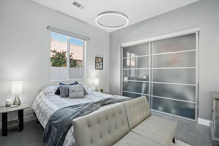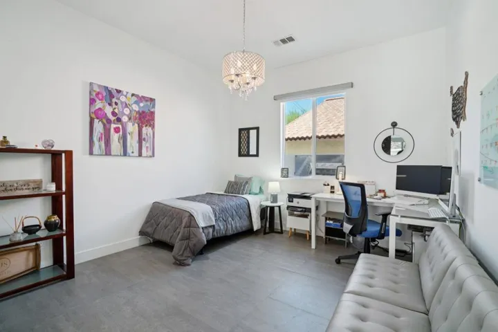 Imagine waking up to breathtaking mountain views every day!Located at the top of the highly sought-after La Quinta Cove, this stunning single-story home offers a perfect blend of modern comfort and desert charm. Featuring 3 bedrooms, 2 bathrooms, and nearly 2,000 square feet of living space, this property is designed for both relaxation and entertaining.The open-concept floor plan is highlighted by sleek tile flooring, soaring ceilings, and walls of windows that fill the home with natural light. A sleek fireplace creates a warm ambiance in the living and dining areas, while the gourmet kitchen impresses with stainless steel appliances, quartz countertops, custom tile backsplash, and an oversized island with seating for six.The primary suite is a private retreat, complete with a mini-split A/C for personalized comfort, a large walk-in closet, and an elegant spa-style bath. Additional upgrades include motorized shades, solar tube skylights, dimmable lighting, and invisible screens throughout.Step outside to your private oasis — a sparkling saltwater pool, surrounded by gorgeous desert landscaping and panoramic views. It’s the perfect place to unwind and enjoy spectacular sunrises and sunsets.Additional features include a spacious laundry room with cabinetry, a two-car attached garage. Hiking trails are just steps away, with shopping and dining nearby.Experience the beauty, privacy, and lifestyle that only the top of the Cove can offer!