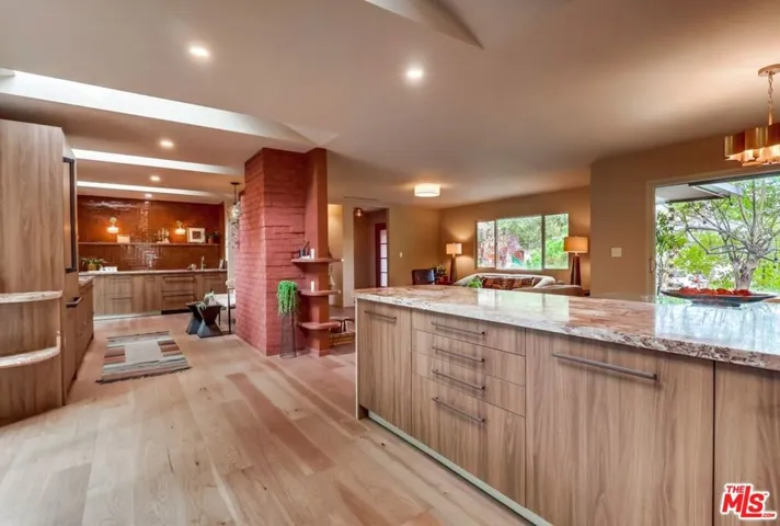 Nestled on a quiet cul-de-sac, this reimagined 4-bed, 3.5-bath mid-century ranch offers 2,506 sq ft of elegant living on a 0.32-acre lot with mature trees and San Gabriel Mountains views. Fully transformed with new plumbing, electrical, HVAC, windows, skylights, roof, and luxurious finishes, this home is designed for comfort and flow. Warm, contemporary interiors feature a spacious living room with a Roman clay fireplace, seamlessly opening to a dining room and serene garden with mountain views, perfect for dining and entertaining. The heart of the home, the kitchen, boasts marble counters, intricate tile, ZLINE appliances, and a built-in coffee bar. The family room opens to a deck and sunken backyard, effortlessly merging indoor and outdoor spaces. The primary suite is a peaceful retreat with a spa-inspired bath and private patio. Three additional bedrooms offer flexibility, including a junior suite with an en-suite bath and potential separate access. The property also features a designer powder room, skylit laundry, two-car garage, and ample driveway parking. Sierra Madre is a sought-after community with small-town charm, a walkable downtown, and cultural events like the Wisteria Festival. Experience Southern California living at its best, where indoor comfort meets outdoor beauty in a home redesigned for modern life.