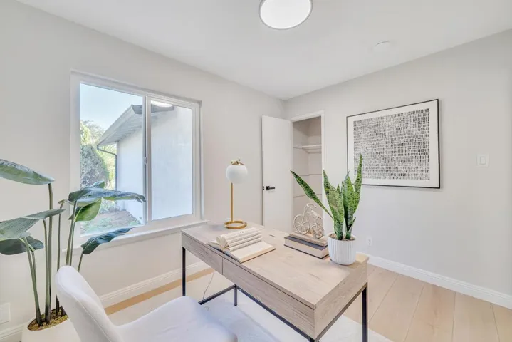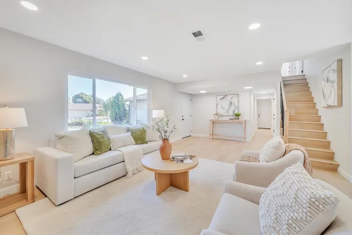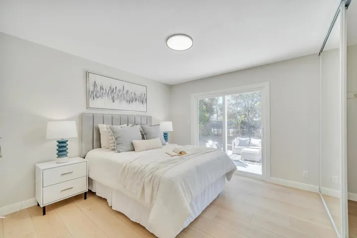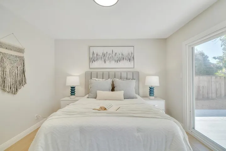 Beautifully updated two-story single-family home with an inviting open floor plan! The bright and spacious living area flows seamlessly into the dining and kitchen spaces, creating a perfect environment for modern family living and entertaining. The downstairs level offers two versatile bedrooms and a stylish full bathroom – ideal for guests, home office, or multi-generational living. Upstairs features a private primary suite with a walk-in closet and its own upgraded bath, along with two additional bedrooms and a beautifully designed hallway bath. Fresh interior finishes, elegant light fixtures, and new flooring elevate the sense of warmth and style throughout. Enjoy the generous backyard with a brand-new concrete patio – perfect for outdoor dining and gatherings under the trees. The front yard is charmingly landscaped with lush greenery and blooming plants, adding to the homes curb appeal. A rare blend of comfort, functionality, and modern elegance – ready to move in and enjoy!