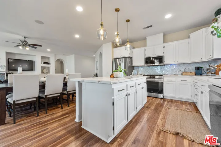 Welcome to 1548 Hunter Moon Way, a beautifully maintained single-story home that has been kept in immaculate condition by its original owner since it was built. Featuring 4 bedrooms, 2 bathrooms and 2,056 sq. ft. of thoughtfully designed living space, this home sits on one of the largest lots in the community with over 11,000 sq. ft. of usable space for entertaining, relaxing, or future expansion. Step inside to find an open and inviting floor plan featuring a modern, updated kitchen with sleek finishes, spacious quartz countertops, new LPV floors and a seamless flow into the living and dining areas making it perfect for family gatherings. The spacious primary bedroom offers a peaceful retreat with an en suite bathroom and a serene view of the expansive backyard, creating the ideal balance of comfort and tranquility. The three additional bedrooms are generously sized and located on the opposite side of the home, providing an excellent layout for privacy- ideal for families, guests, or a dedicated home office setup. An updated bathroom adds a fresh, contemporary touch, while the expansive backyard offers endless potential for a pool, garden, or outdoor living oasis. Located in a family-friendly community complete with a large park and basketball courts, this home delivers modern comfort, community and convenience all in one. Enjoy the best of Beaumont living just minutes from the Cabazon Outlets, 6th Street shops and the scenic San Gorgonio Pass, with easy access to the San Bernardino Mountains for weekend adventures. In addition to boasting a top-rated school system, this is a rare opportunity to own a pristine, move-in-ready home on a premier lot in one of Beaumont’s most desirable communities.
