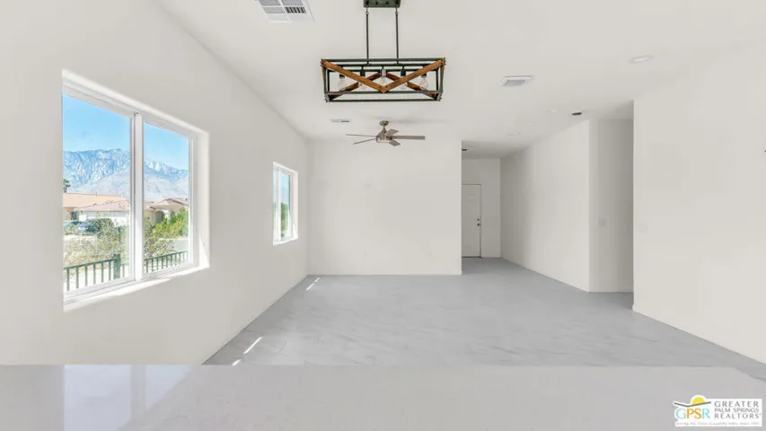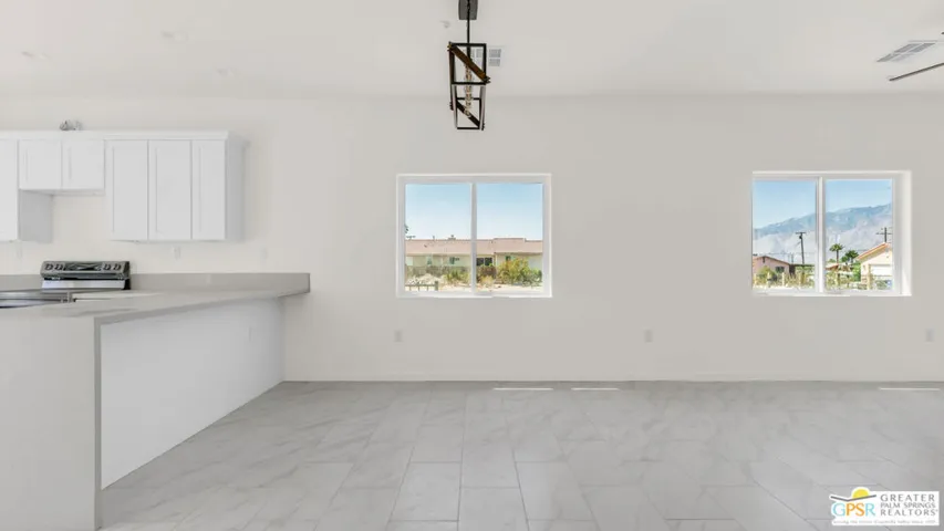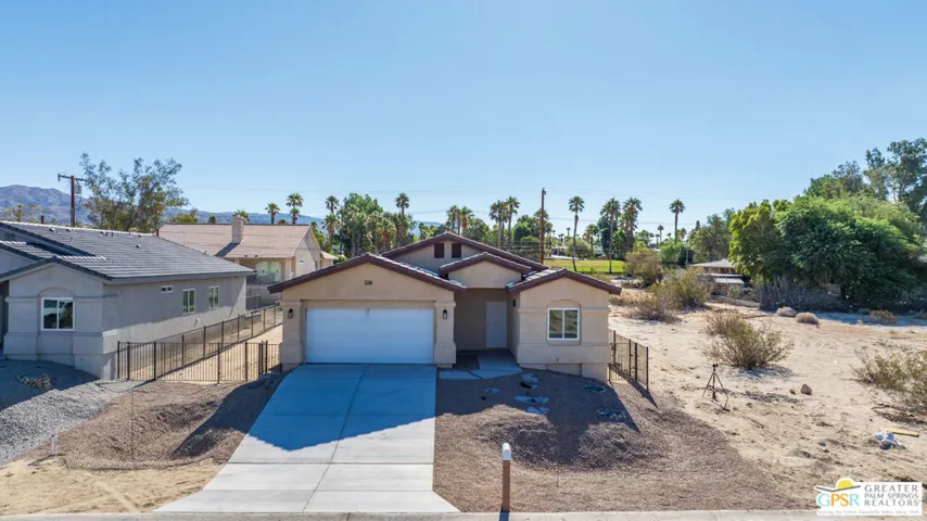 New Construction with No Hoa and Solar! This single-story residence features an open-concept layout with stylish upgrades that feature tile flooring that flows seamlessly throughout the living spaces. Clean lines and modern finishes create a sleek, inviting atmosphere. The thoughtfully designed kitchen with stainless steel appliances , waterfall granite counter top opens to the living and dining areas, making it ideal for entertaining or relaxing at home. Private guest quarters, offering flexibility for visiting family or even a home office. With its combination of contemporary elegance, practical design, and the ease of single-level living, this home is move-in ready and perfectly situated to enjoy everything Desert Hot Springs has to offer. Enjoy your mountain views while entertaining in your fenced back yard. Equipped with Central AC / Heat and Solar.