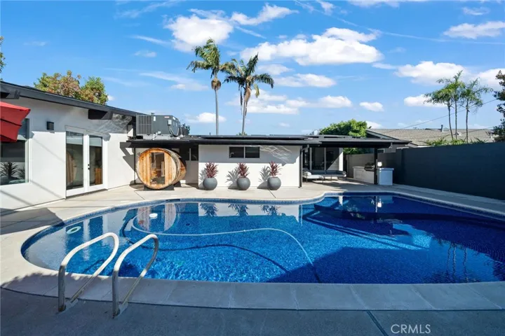 Outside, the enhancements continue with new stucco completed just two years ago and refreshed shingles over the existing roof. The backyard is a true entertainer’s paradise, featuring a pool. swim spa, sauna and a custom Santa Maria Argentine-style BBQ with an integrated empanada and pizza oven, and an inviting patio for outdoor dining and relaxation.