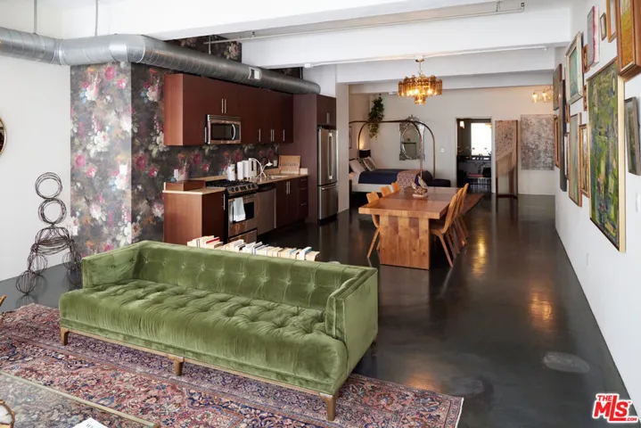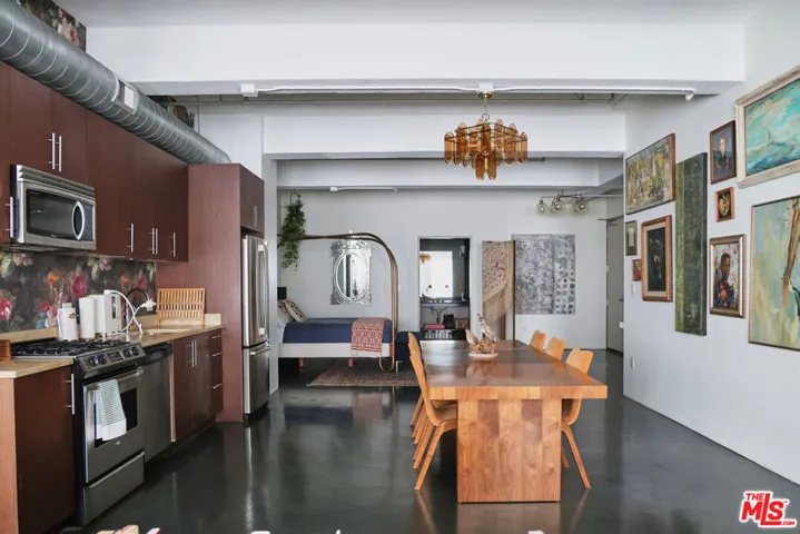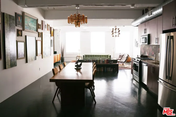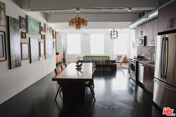 Beautiful loft at the historic Eastern Columbia building. Polished concrete floors with full southern exposure views. This is an open floor plan with a dedicated bedroom area, ready for flexible use and creative configurations. The kitchen includes shell stone counters and stainless steel appliances. The large bath features a deep soaking tub. Enjoy all the building has to offer, including the regal lobby, beautiful rooftop pool, spa, fireplace, and lounge area, wifi, Zen garden, workout room, front desk staff, and on-site property manager. Sitting at the corner of South Park, the Fashion District, and the Historic Core, the Eastern Columbia Lofts is directly across the street from The Orpheum Theater and a short distance from boutiques and cafes.