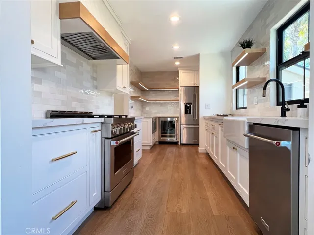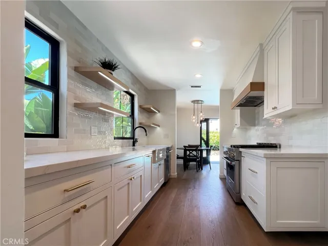 Beautiful and spacious 3-bedroom, 1-bath single story house located in the desirable El Dorado Park area of Long Beach. This home boasts a range of modern amenities including laminate flooring, recessed lighting, a cozy fireplace, and LED lighted shelves. The house features laminate flooring and has been freshly painted The large windows throughout the house allow for an abundance of natural light. The remodeled kitchen features newer white cabinets with quartz countertops, farmhouse sink and ceramic tiled backsplash. The upgraded stainless steel appliances includes a built-in microwave, dishwasher and a wine refrigerator. The remodeled bathroom features a newer vanity, marble stand-up shower and a separate bathtub. Washer and dryer are included without warranty. The house also features a swimming pool, with landscaping and pool maintenance included. The attached garage provides convenient parking. The property is located near the 405 and 605 freeways, and is just a short distance from El Dorado Park, Los Alamitos High School, Alamitos Beach, and Cal State Long Beach. This is a perfect place to enjoy the Southern California lifestyle. Do not miss out!