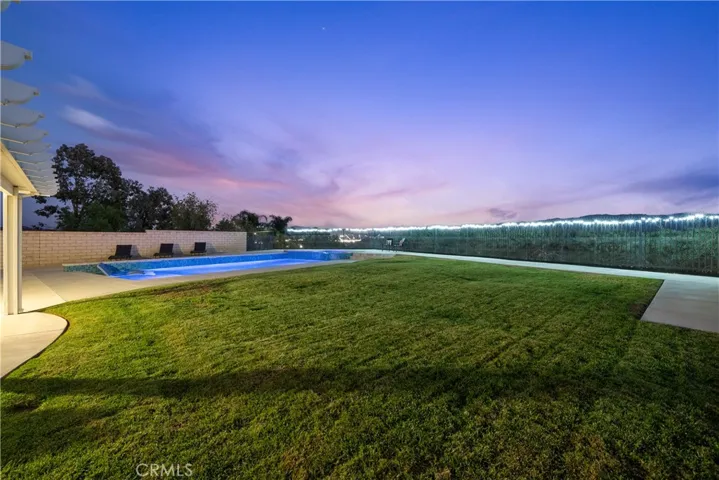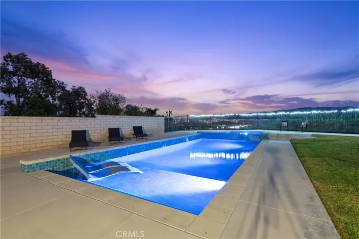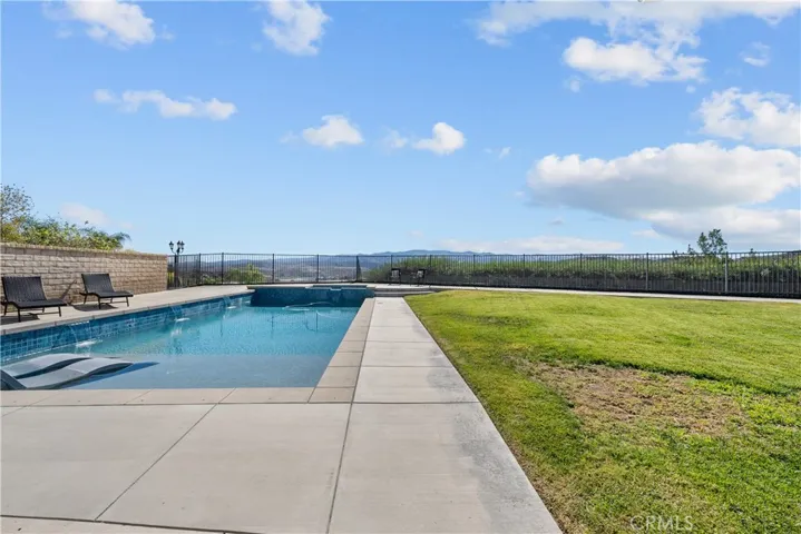 The backyard is a true showstopper! The expansive lot boasts a stunning pool with a Baja shelf and spa, creating a resort-like oasis perfect for relaxing or entertaining. A covered patio provides the ideal spot to unwind while enjoying breathtaking valley views. The generous grass area invites play and recreation, while large concrete sections offer space for sports or outdoor gatherings, making this backyard an unforgettable retreat.