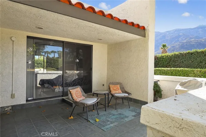 Just a five minute to downtown’s Indian Canyon! The Casino and Convention Centre are right around the corner. Directly across Alejo Road is the Movie Colony. The unit comes furnished for immediate enjoyment. The TWO-CAR GARAGE is a must for some! Being a single-story end unit, it is much brighter with little noise. The unit was recently totally refreshed. It comes with a huge private south-facing patio with a beautiful big bright-orange sun-awning. The north-facing patio looks out to a peaceful treed grassy knoll. Here is the perfect place to relax as you tend to your steak, cooking on the barbecue beside you. Skip out the backdoor to a pool and jacuzzi. Love tennis and pickleball? This is the place. You will acquire a high-end unit, in a high-end complex, in a high-end part of Palm Springs!