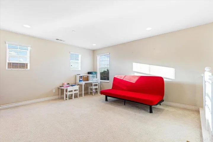 Welcome to this elegantly maintained 4-bedroom, 3-bath home in the desirable Rancho Santalina community of San Marcos! Built in 2013, this spacious 2,376 sq ft residence features an open-concept floor plan with a bright great room, modern kitchen with granite counters, stainless-steel appliances, and a large center island—perfect for entertaining. The downstairs bedroom and full bath are ideal for guests or a home office. Upstairs offers a generous loft, convenient laundry room, and a luxurious primary suite with a walk-in closet and spa-like bath. Energy-efficient with owned solar and dual-zone HVAC. Enjoy outdoor living with a private, low-maintenance backyard featuring paver patio, mature landscaping, and no rear neighbors. Located near top-rated schools, parks, and shopping with easy freeway access. Very Low HOA, move-in ready and beautifully upgraded throughout!