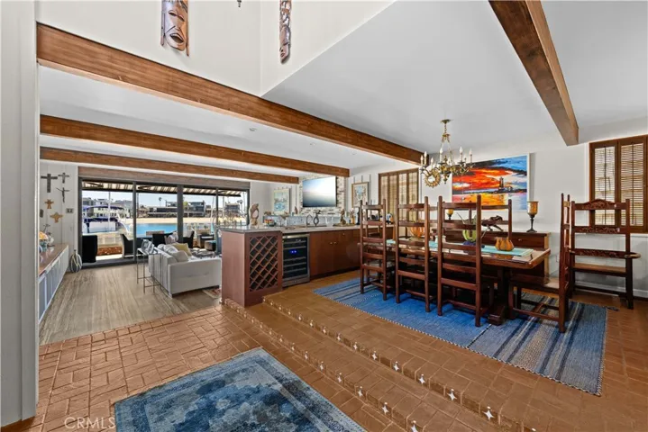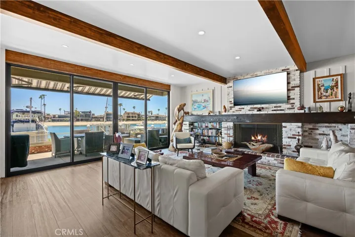 Welcome to prestigious Treasure Island and a Naples premier location. Positioned in the heart of Corso Di Napoli Waterfront, overlooking pristine Alamitos Bay, The Peninsula water front and Palos Verdes. This South facing luxury home enjoys Sunrises and Sunsets year around. This Three Bedroom, Three and a half Bath Home is updated and Turnkey. Enter through the beautiful wooden double doors, to an Open Floorplan with brick and vinyl wood flooring throughout the first level. The remodeled Kitchen is functional and well appointed, while overlooking the elevated Formal Dining Room and Bar area. Looking over the Bar area to the sunken Formal Living Room with a brick wood burning Fireplace. These three rooms all focus on the magnificent water views of Alamitos Bay through the newly installed Fleetwood sliding Glass floor to ceiling doors. Enjoy the spacious waterfront patio at the waters edge, as well as, your own private dock which can hold a 40 foot Yacht or miscellaneous watercraft. As you move upstairs, enjoy the private Guest on-suite bedroom and bath with vaulted ceilings and wood beams and plenty of closet storage. Moving up the next level, brings you to another guest bedroom with on-suite bathroom and storage. Moving to the front Primary suite and overlooking Alamitos Bay, once again with Floor to ceiling Fleetwood sliding doors and exterior balcony, this room has vaulted ceilings as well all natural wood beams. The Primary bath has a separate tub and shower and dual vanity sinks. Enjoy the Indoor/Outdoor Lifestyle of Naples and Treasure Island. This property already has the newly installed Sea wall, therefore, no disruptions in the future.