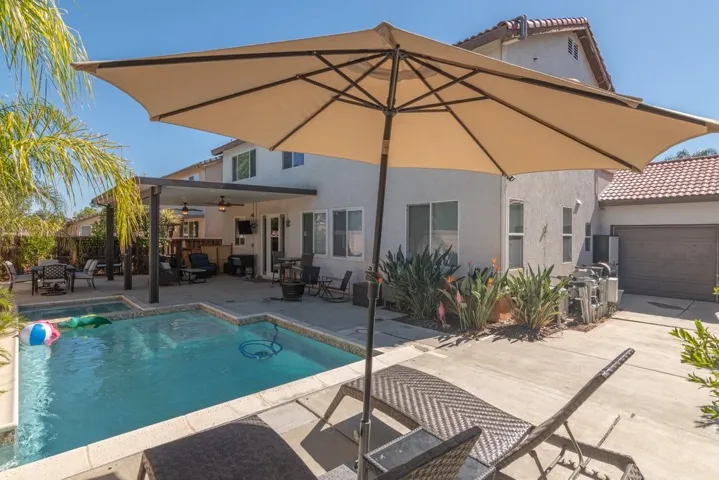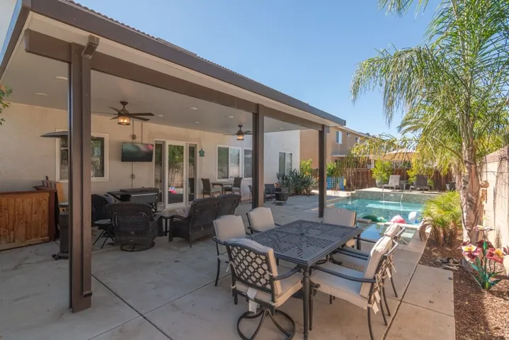 Outside, the backyard oasis steals the show—complete with a custom swimming pool and spa, an entertainer’s patio with alumawood cover, and no rear neighbors, providing uninterrupted panoramic views of the surrounding hills. The easy to maintain landscaping in both front and back yards makes keeping your yard well kept a breeze. Enjoy your own private view of Wheatfield Park’s spectacular 4th of July fireworks right from your backyard!