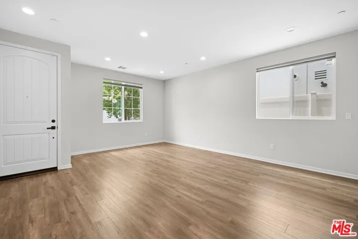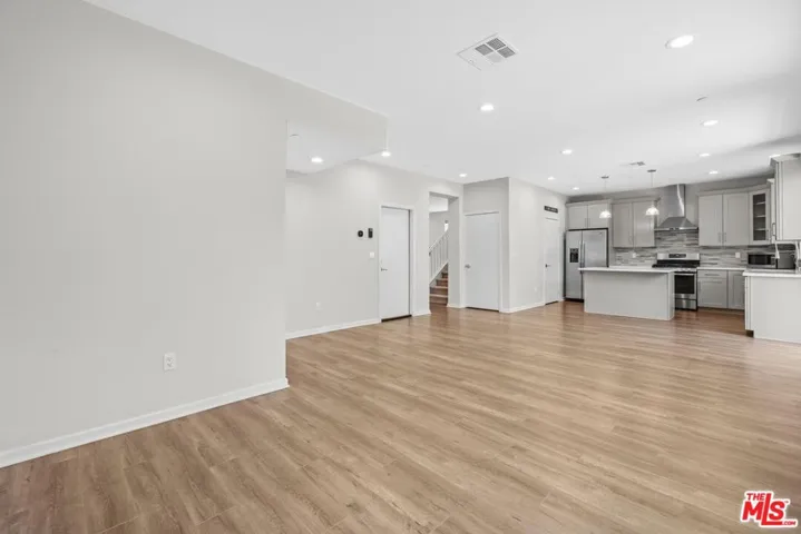 This charming 4-bedroom, 3-bathroom home offers a welcoming and practical layout, ideal for everyday living and family moments. The main level features an open-concept design with warm hardwood flooring that flows seamlessly through the living, dining, and kitchen areas. The kitchen is a functional space with stainless steel appliances, ample cabinetry, and a spacious island perfect for casual meals or gathering. Large windows throughout allow natural light to flood the interior, providing lovely views of the cozy patio area. Upstairs, the home includes four comfortable bedrooms, including a master suite with a relaxing spa-like bathroom, offering a peaceful retreat. Nestled in a quiet neighborhood, this home blends modern updates with a laid-back ambiance, making it ready to be settled in and create lasting memories. Additional features include a dedicated laundry room with built-in cabinets and utility sink, central air and heat, contemporary bathrooms with dual sinks and elegant tile-work, and direct garage access for convenience. The private backyard is thoughtfully landscaped with lush greenery, a spacious patio, and low-maintenance turf perfect for relaxing, entertaining, or enjoying outdoor play. This move-in-ready property combines comfort, stylish upgrades, and a strong sense of community in vibrant Van Nuys.