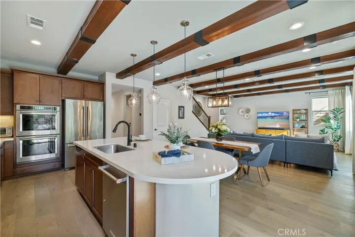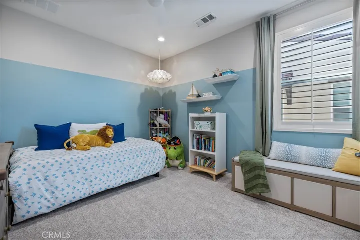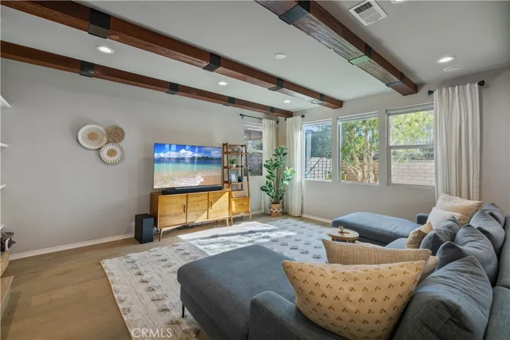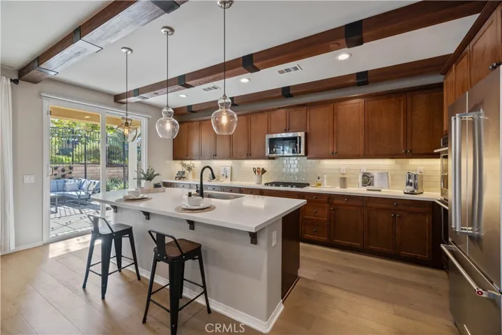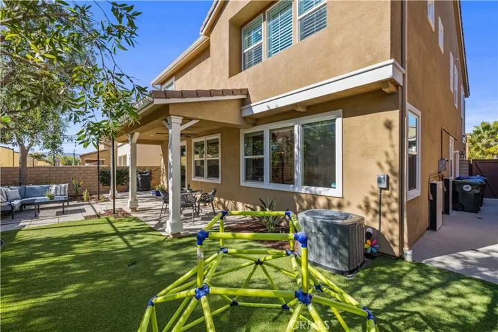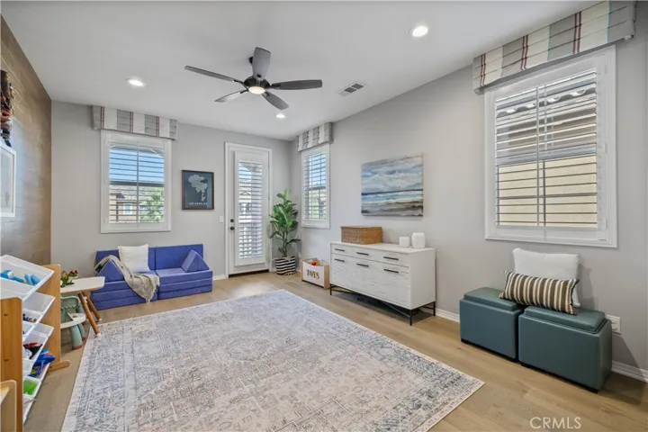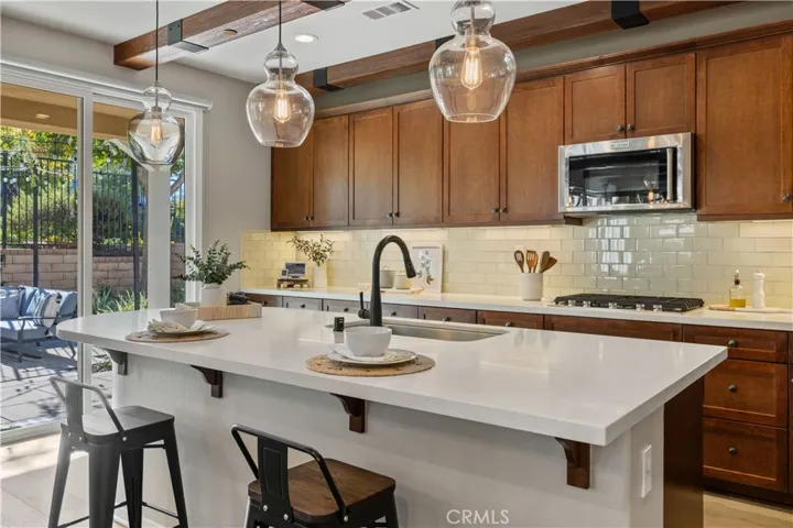 Welcome to a stunning luxury home in the highly sought-after Five Knolls community. Upon entering you are greeted by engineered hardwood floors throughout the home, creating a warm & inviting atmosphere filled with natural light. To your right a versatile room awaits, that can serve as a home office that features sliding glass doors for privacy. Across from the sitting area, the mudroom is beautifully complemented by mahogany cabinetry that offers abundant storage, wine fridge & access to the garage. Step into the gourmet kitchen that boasts an abundance of cabinet space, premium appliances, double oven, quartz countertops & abundant lighting. The kitchen seamlessly opens to the living area with overhead beams that extend across this open-concept space. Enjoy the advantages of recessed dimmable LED lighting throughout the home, alongside stylish vinyl shades & wood shutters. Convenience continues with a generously sized laundry room that features an abundance of cabinetry to accommodate your storage needs. Upstairs you will discover a cozy loft area with a built-in office space with balcony with a picturesque view. Both bedrooms have ceiling fans & generous walk-in closets, while the primary suite is the epitome of luxury & comfort. This light, bright, & open retreat has new plush carpeting, custom closet system & an opulent primary bathroom. The bathroom offers luxurious modern finishes including a clean white marble Herringbone tiled floor, soapstone countertop & free standing soaking tub plus an exquisite shower adorned with natural stone floor. Outside step into a meticulously landscaped backyard with California native plants ensuring minimal water usage while promoting sustainability with drip irrigation system as well as durable artificial turf for a year-round green space. This serene area has a covered patio ideal for relaxation or hosting gatherings. Enjoy the perfect size yard, complete with a designated dog run. This smart home is equipped with a whole-house stereo system with ceiling speakers & hardwired alarm system with motion detectors. Upgrades include fresh exterior paint, paid-off solar & two Tesla Powerwalls with a universal car charger. The expansive garage features a durable concrete coating & the home has a new tankless water heater. Enjoy resort-style amenities in a community that includes a swimming pool & clubhouse as well as being close to Golden Valley Park & dog park, making it not just a residence but a vibrant lifestyle.