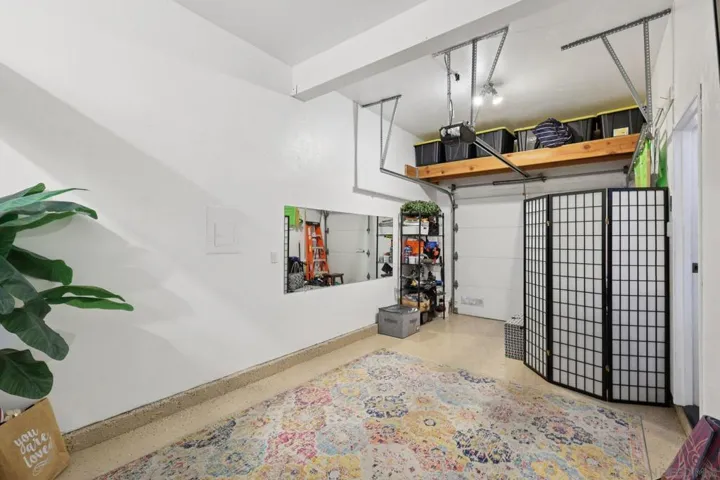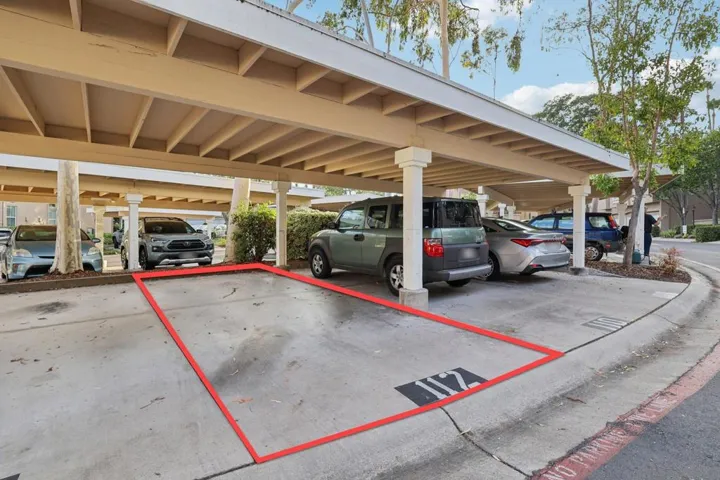STUNNING BELSERA CONDO – PRIME LOCATION NEAR MISSION TRAILS PRESERVE – LARGE BALCONY – GARAGE WITH DIRECT ACCESS TO HOME AND CARPORT PARKING! Welcome to this beautifully upgraded and freshly remodeled upper-level 2-bedroom, 2-bath home in the highly desirable Belsera community, located just steps from Mission Trails Preserve. Bright, spacious, and designed for modern living, this home combines elegant finishes, smart features, and everyday comfort. The open-concept layout features vaulted ceilings and expansive windows that fill the home with natural light, creating a bright and airy feel. The living room features a cozy gas fireplace with Birch wood logs and a $1,600 Samsung Frame TV, along with custom bamboo window treatments. The large second-story balcony offers the perfect space to relax and take in the peaceful surroundings. The kitchen is beautiful, featuring wood-finish cabinets, quartz countertops, a deep stainless steel chef’s sink with a bronze faucet, a low-profile vented microwave, custom lighting, and an LG refrigerator with a double pull-out freezer. The pull-out pantry shelves and abundant cabinetry make storage effortless. The spacious primary suite features vaulted ceilings and a sliding barn door that opens to a luxurious ensuite bathroom with a double vanity, a beautiful walk-in custom-tiled shower, and a large walk-in closet. Both bathrooms have been stylishly updated with modern fixtures and finishes. Additional features include a Blink camera doorbell with a smart DESLOC front lock that opens via fingerprint, code, fob, or Bluetooth. The attached garage with direct access to your home is fully finished with epoxy floors, mounted LG TV, overhead storage, and a stackable LG washer and dryer. The house also includes bronze hardware throughout, adding to the elevated designer feel. Recent upgrades include a new HVAC system, a new water heater, and new kitchen appliances. The elegant, warm oak LVP flooring ties everything together, creating a cohesive, sophisticated look. Belsera offers resort-style amenities, including two pools, spas, BBQ areas, volleyball courts, walking trails, and lush, park-like landscaping. Enjoy a lifestyle that blends tranquility and convenience—just minutes from freeways, schools, shopping, restaurants, and parks. This stunning home is San Diego living at its finest—modern, functional, and completely move-in ready. Conveys: 2 mounted TVs (Samsung Frame TV in the living room and LG TV in the garage. LG stackable washer and dryer, all kitchen appliances, all window covers, Camera doorbell, and smart door lock.