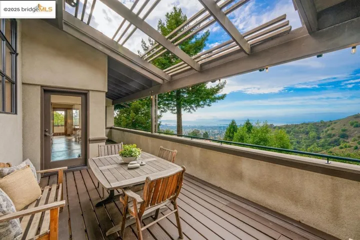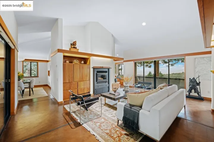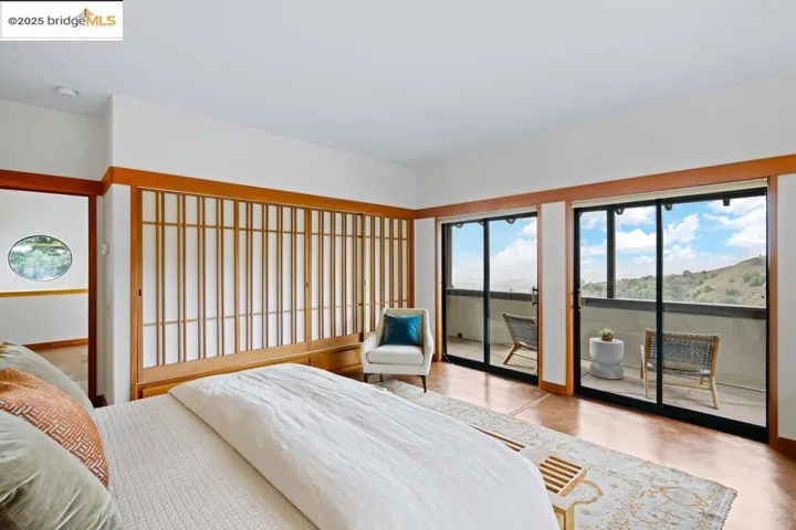 Set on a rare triple lot, together spanning just under an acre, at the end of a peaceful cul-de-sac, this expansive Japanese-influenced mid-century rebuild, offers privacy, volume & serene canyon & Bay views. Soaring double height ceilings & integral color concrete floors define a dramatic, serene, modern interior with seamless indoor-outdoor flow. Thoughtfully situated on the downslope with access directly into a 3-car garage, the 3 level design creates a strong connection to the landscape, with all levels being on grade. The main level features generous open living spaces, built-in cabinetry & a chef’s kitchen. It has 3 beds and 2 ensuite baths on this level plus a powder room. Expansive decks extend the living area and capture green and Bay vistas. An elevator services all levels, including a 1 bd. in-law with separate access, ideal for guests, multi-generational living or a creative retreat. This distinctive property blends architectural sophistication & modern comfort in one of Berkeley’s most private & sought after settings. Easy access to freeways and parks.