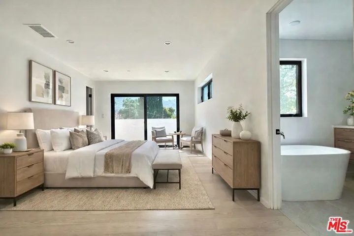 INCREDIBLE PRICE. Priced to be the LOWEST priced NEW construction in Studio City! Every great story begins with a setting. This one begins on the Island of Studio City. Hidden within one of the most discreet pockets of Studio City, this newly built architectural home feels worlds away from the city yet sits just moments from Universal Studios Hollywood and the vibrant energy of Ventura Boulevard. Step inside and the scene unfolds: soaring ceilings, sunlit open spaces, and a sculptural staircase that immediately sets a dramatic tone. Designed for modern living, the home offers four en-suite bedrooms, including two on the main level for flexible living, guests, or creative space. The chef’s kitchen takes center stage with quartz countertops, custom cabinetry, handcrafted Zellige tile, and seamless Thermador appliances flowing naturally into the living and dining spaces designed for entertaining. A beautiful glass accordion door opens to a private courtyard retreat, creating the effortless indoor-outdoor lifestyle Southern California is known for. Whether hosting friends under the stars or enjoying a quiet morning coffee, the setting feels both intimate and elevated. Upstairs, the primary suite plays the role of a true sanctuary. Abundant natural light, custom closets, and a spa-inspired bath designed to unwind after a long day in the city. Modern comforts complete the experience, including fully paid solar, integrated smart-home technology, designer finishes, and thoughtful details throughout. Minutes from the studios and tucked into one of Studio City’s best-kept secrets beside one of the most hidden South Weddington Park, this home offers something rare in Los Angeles: A place where privacy, design, and location all share the spotlight. Welcome to the Island of Studio City.
