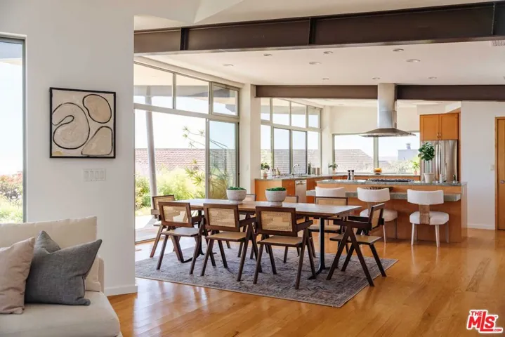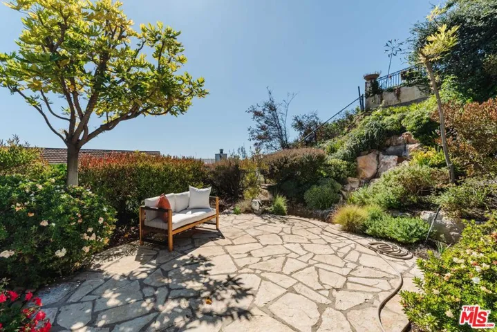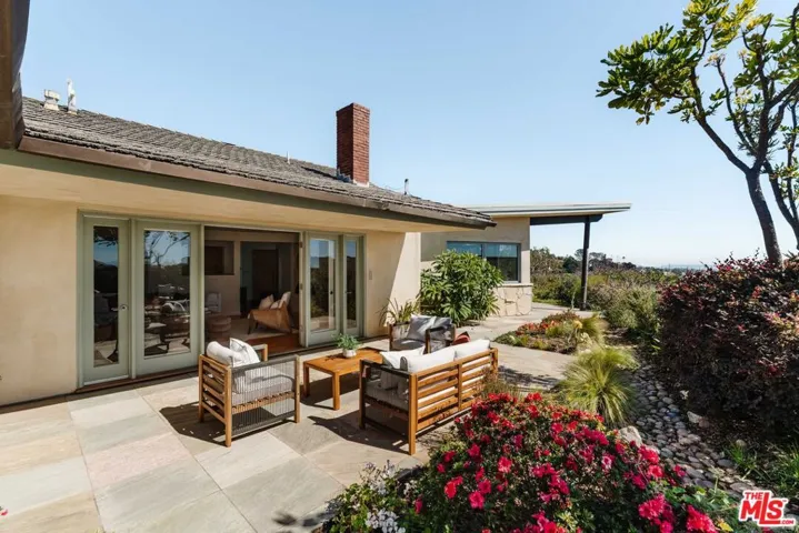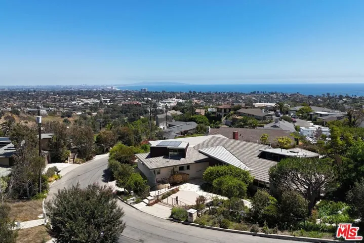 This stunning, single-level, architectural residence enjoys panoramic views from the city out to the ocean. Framed by exposed steel beams, the open-concept main living space features soaring ceilings that draw the eye outward toward the coastline – the true centerpiece of the home. The chef’s kitchen is outfitted with top-of-the-line stainless steel appliances and sleek stone countertops, anchored by a large center island that flows seamlessly into the dining and living areas. Floor-to-ceiling windows and sliding glass doors frame the panoramic views and open to a private backyard with alfresco dining and entertaining areas. A formal living room with fireplace offers access to the side yard, where a tranquil waterfall and pond create a peaceful retreat. Down the hall are three bedrooms, including the expansive primary suite, plus a flexible bar/study that could serve as a fourth bedroom. The primary features a walk-through closet, side yard access, and a spa-like bath with dual vanities, oversized shower, and a freestanding soaking tub. Additional highlights include an elevator between the main level and oversized garage (ideal for parking and/or a home gym), gated upper-level parking, and mature landscaping. Don’t miss this opportunity to call this rare architectural house with jaw-dropping views home.
