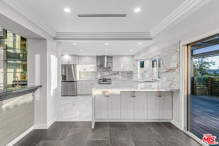 Oh, she’s gotviews.The kind that stop conversation mid-sentence and make you forget your own name. Welcome to 1716 Via La Paz, where drama is the floor plan and subtlety was left at the gate. Literally there’s a private gate. You’ll feel important every time it opens. Walk in and it’s instant showtime. The ceilings shoot up to the heavens, sunlight floods in like it’s trying to get discovered, and marble practically everywhere you look. Not one, not two, but three fireplaces. Because why commit to one vibe when you can have “cozy,” “sultry,” and “main character meltdown” all in the same night? The kitchen is a moment. Bold, glossy, unapologetic. The kind of space where you’ll host a dinner party just to say, “Oh this old marble slab? Imported.” It spills into a living area that’s pure glass and glow, with doors opening out to a deck that hovers above the city like your own personal red carpet. Upstairs, the primary suite gives leading-role energy. There’s a soaking tub on a platform (because of course there is), a marble shower that deserves its own lighting cue, and yes, a fireplace for nights that call for less Netflix and more chilling. The other bedrooms hold their own, including a downstairs number with a custom Murphy bed that flips down faster than a well-timed death drop.And then we hit the bar. The mirrored wet bar. The sparkle, the shimmer, the Studio 54 of Burbank. This is where conversations get louder, secrets get funnier, and someone inevitably says, “We should do this every weekend.” The sliding doors lead to a deck that practically hums with possibility. Sunset here doesn’t just happen, it performs. And when you finally peel yourself away from your own fabulous fortress, you’re minutes from Castaway Burbank for the city’s best view that isn’t yours, and DeBell Golf Course for when you want to wear a collared shirt and call it exercise. 1716 Via La Paz isn’t here to fit in. She’s the headliner. The statement piece. The afterparty and the encore all rolled into one hillside home.