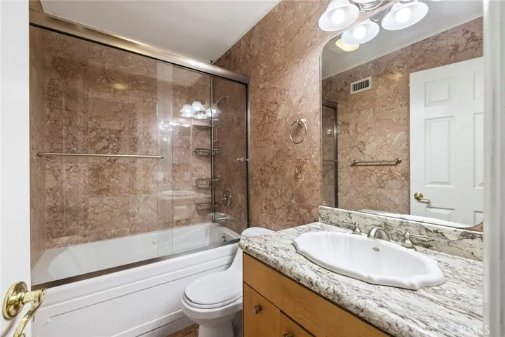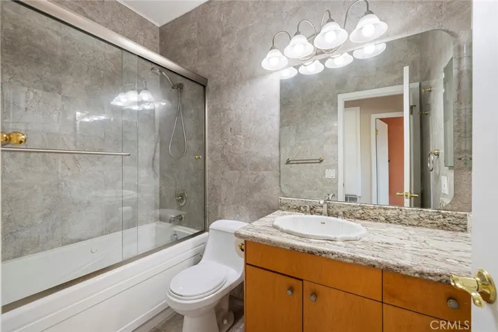 The grand entry welcomes you into a light-filled interior highlighted by granite flooring, crown molding, soaring ceilings, recessed lighting, and the subtle sparkle of Swarovski crystal chandeliers. The step-down living and dining areas feature a warm fireplace, vaulted ceilings, and sliding glass doors that frame the scenic outdoor setting. The remodeled kitchen boasts granite counters and backsplash, stainless-steel appliances, a walk-in pantry, illuminated display cabinets, and a breakfast bar that opens to the informal living area and the permitted 200-sq-ft sunroom — perfect for a home office, gym, or playroom. The main level includes a powder bath and two comfortable bedrooms, each with sliding doors to a wide balcony overlooking the view. Upstairs, two luxury bedroom suites offer en-suite baths and dual closets (one walk-in, one mirrored wardrobe). The primary suite adds a cozy fireplace and a spa-style bathroom featuring a two-person jetted tub, frameless glass shower with body jets, and rich marble detailing. The lower level includes a versatile bonus room ideal for a studio, media room, or office, along with a dedicated laundry room and direct access to the oversized 3-car garage with high ceilings, drywall finish, and its own HVAC system. Outdoors, the property reveals a private hillside sanctuary designed for relaxation and entertaining, featuring wide slate patios, serene water features, a koi pond, winding pathways, multiple sitting areas, and an irrigated vegetable garden. Terraced viewpoints provide peaceful spaces to take in the sunsets or envision a future ADU or creative retreat. Recent upgrades include a new water heater, newer furnace, and enhanced exterior lighting that elevates the home’s warm evening ambiance.