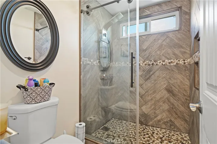 The bathrooms have been completely remodeled with custom vanities, new tubs, tiled walk-in showers, and sleek glass doors. The master suite features a luxurious walk-in tiled shower for a spa-like experience. Flooring includes upgraded tile downstairs, laminate on the stairs and upper level, and custom railings with iron handrails for an elegant touch.