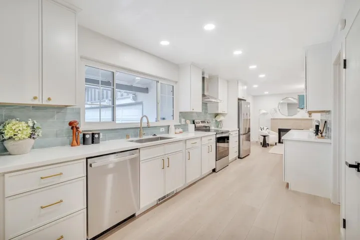 Stunningly remodeled single-family home nestled in the sought-after Mission San Jose neighborhood! This charming 3-bedroom, 2-bath residence showcases a full interior and exterior transformation completed with city permits-featuring a new roof, fully remodeled kitchen and bathrooms, new flooring throughout, fresh paint, recessed lighting, new furnace, thermostat, and energy-efficient appliances. The driveway and garage have been refinished for modern functionality. Step inside to discover a bright and spacious layout with a gourmet kitchen, open living and family areas, and stylish finishes that blend comfort and sophistication. Outside, the front yard features neat sculpted greenery with fresh mulch, while the private backyard is a serene retreat with mature fruit trees, flowering plants, and a tranquil stone garden ideal for relaxation or outdoor gatherings. Close to award-winning Mission schools, Gomes Park, Lake Elizabeth, BART, and shopping. Move-in ready and designed for a lifetime of comfort and style!
