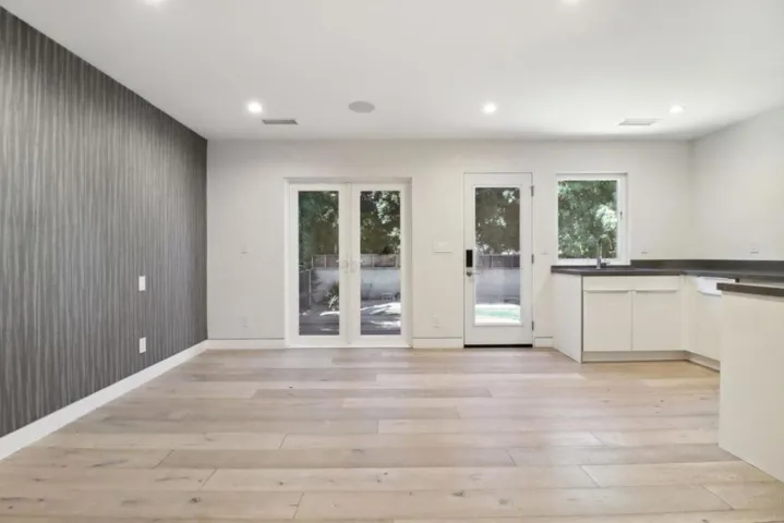 Situated in the prestigious enclave of Tarzana, this exceptional rental property redefines luxury living. The estate offers two distinct yet equally refined living spaces: a grand main home and an attached guest house. The main home, comprising three bedrooms and two and a half baths, captivates with its open floor plan. The formal living room and dining area set an inviting tone, while the remodeled kitchen, a culinary masterpiece, features a substantial island with a waterfall quartz countertop, floating shelves, and top-of-the-line Miele stainless-steel appliances. The living room, enhanced with recessed lighting, a skylight, and a powder room, opens to the backyard through sliding doors. With two bedrooms, one bath, and a private entrance, the newly constructed guest house ensures utmost privacy. Both dwellings are integrated with the advanced Control4 security system, featuring comprehensive camera surveillance, a surround sound system, and sophisticated lighting controls. The expansive backyard is boasting a large fenced pool with a jacuzzi. Located moments from the culinary delights of Ventura Boulevard, the scenic bike path to Topanga Mall, and a variety of religious centers, this property is tailored for discerning families seeking an unparalleled lifestyle in Tarzana.