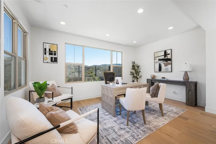 Experience the best of Irvine living in this never-lived-in residence located in The Reserve at Orchard Hills, a 24-hour guard-gated community surrounded by avocado orchards and hillside trails. Part of the award-winning Irvine Unified School District, this home combines architectural elegance, natural light, and thoughtful design within one of Orange County’s most sought-after neighborhoods. Capturing unobstructed mountain views, the residence embraces seamless indoor-outdoor living through an expansive three-panel sliding glass wall that opens to a custom backyard with tiled patio, turf, gardens, and irrigation system. Inside, every detail is intentional—white-oak engineered hardwood floors, recessed lighting, and 9-foot ceilings create a bright and refined atmosphere. The chef’s kitchen is equipped with a Wolf 6-burner cooktop, Sub-Zero refrigerator, built-in oven and microwave, deep pantry, quartz countertops, and soft-close cabinetry with pot-and-pan drawers. The open-concept layout connects the kitchen, great room, and outdoor living area—ideal for gatherings and relaxation alike. The main-floor bedroom includes a nearby full bath with walk-in shower, offering flexibility for guests or multi-generational living. Upstairs, a spacious loft provides a secondary retreat for TV, study, or play. The primary suite features vaulted ceilings, a walk-in closet, freestanding soaking tub, dual vanities, and a designer tile walk-in shower with invisible drain. The upstairs laundry room includes a sink and additional cabinetry for convenience. Additional highlights include fully paid solar panels, smart-home capable, tankless water heater, and epoxy-finished garage floor. Residents enjoy resort-style amenities—clubhouse, multiple pools, parks, tot lots, and scenic walking trails. Ideally located approx 0.8 mi to Orchard Hills Shopping Center (Pavilions, Peet’s Coffee, CorePower Yoga, CVS), approx 1.2 mi to H-Mart, and approx 2 mi to CA-241 Toll Road for convenient access throughout Orange County. The Reserve at Orchard Hills offers a lifestyle immersed in nature and design. Winding trails connect to open spaces that capture the spirit of Irvine. Nearby amenities complement the area’s tranquil setting, while the home’s location ensures privacy and peace. With its fusion of modern innovation, timeless materials, and connection to landscape, 107 Somera represents the best of new Irvine living.