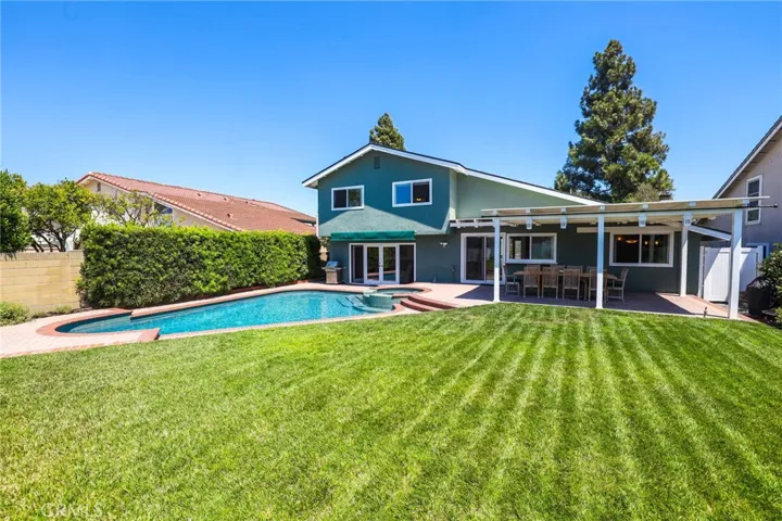 Step outside to your very own resort-style oasis. The backyard showcases a sparkling saltwater pool and spa, a wide open lawn perfect for gatherings or even your annual wiffle ball tournament, and direct access to the Santa Ana River Trail—ideal for biking to the beach or enjoying coastal breezes right from your yard.
