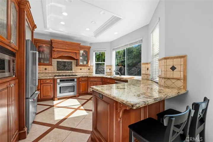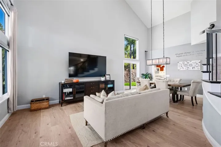 Welcome to this stunningly updated, move-in ready home nestled in one of the most desirable neighborhoods of South Orange County, where quiet streets, mountain views, and California sunshine create the perfect everyday backdrop. From the moment you arrive, you’ll feel the pride of ownership. A grand leaded-glass double door entry opens to a light-filled foyer and sweeping staircase, setting the stage for 2,539 Sgft. of sophisticated yet comfortable living. The open-concept 4 bedroom 3 bath + office floor plan sitting on almost 7,000 Sqft. seamlessly connects the formal living and dining areas to a warm, inviting family room centered around a custom fireplace and large sliding doors that bring the outdoors in. Enjoy effortless indoor-outdoor living with direct access to your private backyard from both dining room and family room, ideal for entertaining, family gatherings, or simply relaxing under the stars. The remodeled chef’s kitchen is a true showpiece featuring premium stainless-steel appliances, custom solid wood cabinetry with rain-glass accents, a statement wood hood, granite counters, travertine backsplash, peninsula seating, a built-in wine bar, and a generous pantry. A private main-floor office (or optional 5th bedroom) with adjacent remodeled full bath and a walk-in glass shower make the layout ideal for guests, multi-generational living, or working from home. Upstairs, the spacious master suite is a serene retreat with vaulted ceilings, Plank flooring, lush views and privacy, a spa-inspired bath complete with dual vanity, granite counters, a soaking tub, step-in shower, and dual walk-in closets with modern built-ins. Three additional bedrooms, each light, airy, and finished with Luxury Vinyl Plank flooring, share a beautifully updated bath with quartz counters. This home checks every box on today’s buyer wishlist: Move-in ready with timeless design and modern updates Energy-efficient with solar panels, upgraded dual-pane windows and sliding doors, Fully re-piped, freshly painted, upgraded with custom lighting, 3-car finished garage with epoxy floors and plenty of storage. Plenty of Outdoor space, ready for entertaining. Enjoy the perfect blend of style, comfort, and function, where every detail has been thoughtfully curated for modern living. This is the home where your next chapter begins. Surrounded by parks, award-winning schools, scenic hiking/biking trails, Dining and Tijeras Creek Golf Course nearby. Close to John Wayne Airport, Beaches.