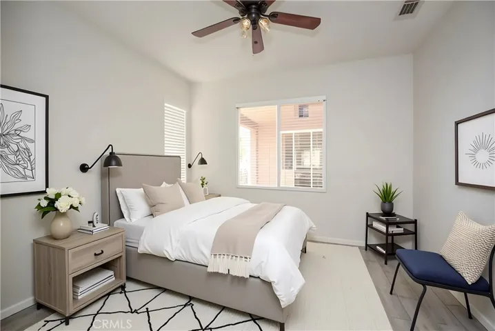 Discover this stunning SINGLE STORY home nestled in the sought-after Skyborne community of Desert Hot Springs. The residence features three bedrooms, two and a half bathrooms, and a two-car garage. The flex room is being used as a dining room and it can be also used as a living room or an office, while the expansive kitchen boasts elegant granite countertops, a large island with bar seating, ample cabinet space, and a built-in desk. The kitchen flows into the family room, complete with a cozy fireplace, ideal for family gatherings. Enjoy recessed ceiling lights, ceiling fans, high ceilings, premium tiles thru out the house. A French door leads from the kitchen to the backyard. The primary suite includes a spacious bedroom, walk-in closet, and a bathroom with dual sinks, a separate walk-in shower, and a bathtub. Two additional well-proportioned bedrooms are included. The covered patio offers additional space, perfect for outdoor entertainment. The laundry room’s convenient location near the garage adds to the home’s thoughtful layout. Drought resistant backyard with solid patio cover. Skyborne community amenities enhance the living experience with a community pool, BBQ areas/parks, a dog park, and private gates. Close proximity to Palm Springs, restaurants, shopping, casinos, and entertainment.