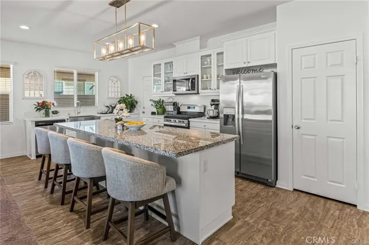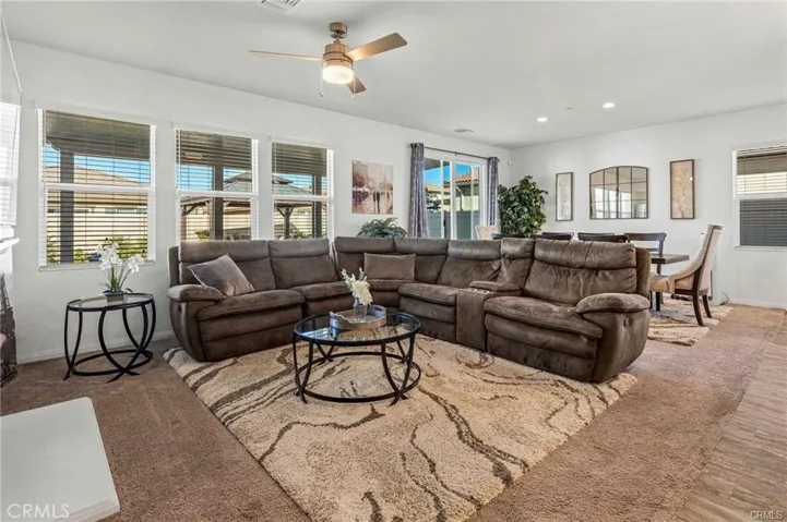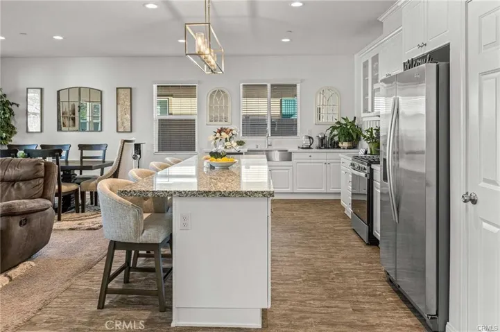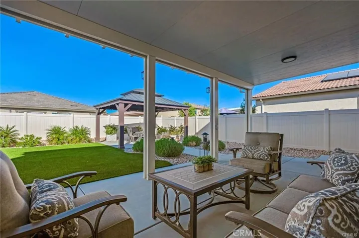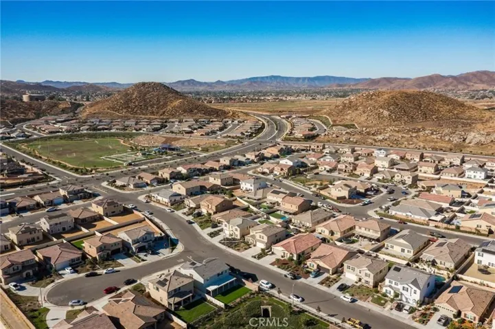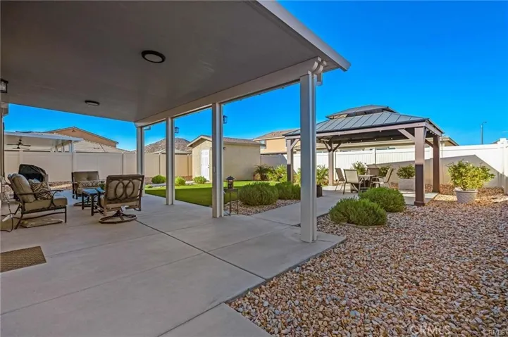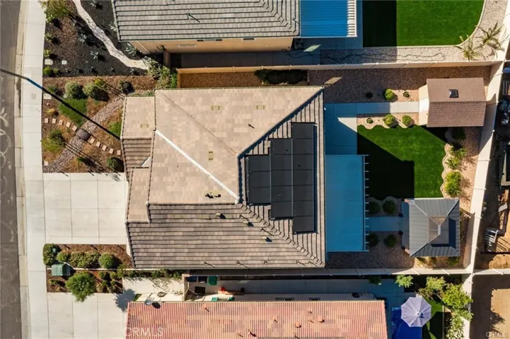 Step into luxury with this gorgeous, well-maintained, thoughtfully upgraded 4-bedroom and 3-bathroom home in the sought-after Persano at Shadow Mountain community. The home’s heart is an open-concept kitchen showcasing elegant granite and quartz countertops, a large center island with a custom pendant light, plenty of storage with glass doors on upper cabinets, an apron sink, and top-notch stainless steel appliances, adding charm for grand entertaining. The family-style great room includes a fireplace and is open to the dining area with natural light spilling generously into the living area from the large backyard with a custom aluma-wood patio, an additional large cabana, a custom-built shed, a gas BBQ hook-up with plenty of room for an outdoor kitchen, complete front and rear landscaping with high-quality turf professionally installed and drought resistant landscape with complete sprinkler coverage including driplines and timer control, rain gutter extensions that drain directly into the underground drainage system, vegetable garden, and full vinyl fencing for privacy. There is a bonus room downstairs, a bathroom, and plenty of storage space. A loft upstairs adds to the spacious feel along with four bedrooms including the primary suite with a walk-in closet and an additional oversized closet. The primary bathroom has dual sinks, a separate soaking tub, and an enclosed shower. You’ll appreciate the convenience of an upstairs laundry room. Custom cord-free blinds are installed throughout the home, The community offers terrific amenities such as a sports park with a basketball court, soccer field, a dog park, walking trails, and more. See attached supplements for the builder home warranty, roof warranty, additional upgrades, owner notes, owner manual, and PAID SOLAR.