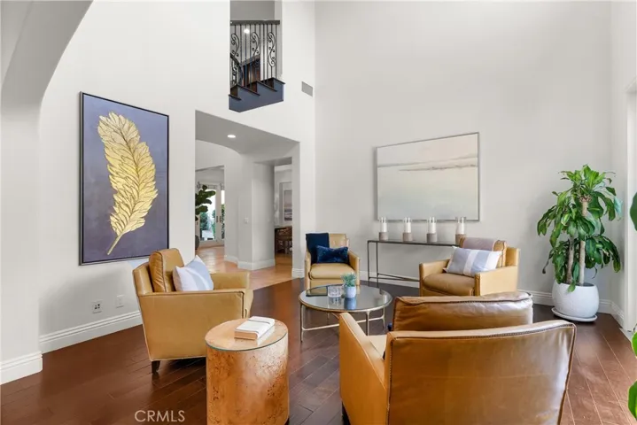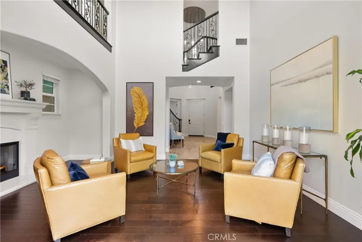 Located in the prestigious gated community of Rancho Madrina, this five-bedroom, five-and-a-half-bath residence combines timeless architecture with modern elegance. The home features a full smooth-coat exterior finish and fresh paint that create beautiful curb appeal, complemented by refined hardscape, fountains, and a redesigned landscape with a saltwater pool and spa. Inside, the grand entry showcases soaring ceilings, a dramatic chandelier, and designer lighting accents that set the tone for sophistication throughout. The open-concept kitchen flows seamlessly into the family room and outdoor entertainment area with a covered patio, built-in BBQ, and TV, perfect for gatherings and relaxed living. Multiple French doors, rich wood flooring, custom built-ins, and four fireplaces add warmth and character. Each bedroom includes its own ensuite bath, while the main-level suite provides flexibility for guests or multigenerational living. Additional highlights include newer appliances, recessed lighting, solid-core doors, and a three car tandem garage with custom cabinetry. Conveniently located near historic downtown San Juan Capistrano, Marbella Golf Course, award-winning schools, and Orange County’s world-class beaches.