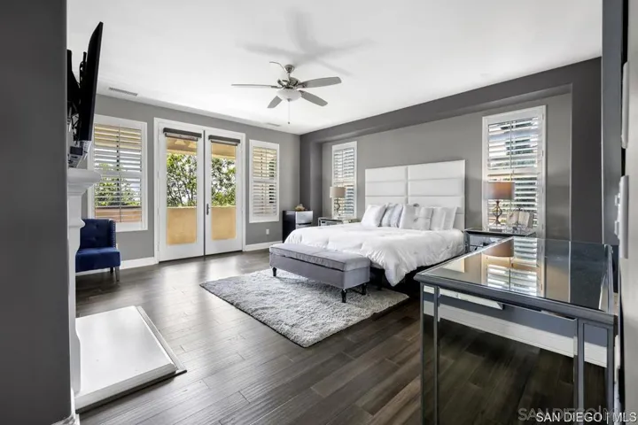 Nestled in a quiet cul-de-sac, this stunning hacienda-style residence features 5 bedrooms, 4.5 baths, a den, expansive loft, private office, wine cellar, and formal living & dining rooms. With its spacious design and timeless charm, the perfect blend of elegance and comfort. The recently renovated gourmet kitchen with oversized island, double ovens, and built-in refrigerator flows seamlessly into the expansive family room, you’ll love the connection between these two spaces, perfect for gatherings and everyday living. From here, enjoy double access to the backyard and central courtyard with fireplace, one of the four fireplaces. The backyard is designed for outdoor living with a covered patio, built-in BBQ, and plenty of space to create lasting memories with family and friends. The layout includes a first-floor bedroom with 1.5 baths, while upstairs offers 3 additional bedrooms (one with balcony), a versatile den, and a luxurious master retreat with fireplace and private balcony showcasing breathtaking lake and mountain views. This Eastlake gem offers everything space, sophistication, outdoor living, and views you never want to leave!