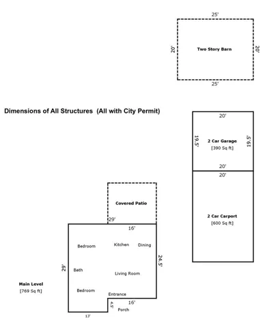 Seller will finance the loan to the buyer at 5.5% interest, no loan fees, four year loan term. 10% down payment. Four structures on the lot all with permits: (1) two bedroom house with a covered patio (2) two-car carport (3) two-car garage (4) two-story recreation building (used to be a barn). The lot size is 75′ x 315′ and the zoning is RA. Fencing on all four sides. The garage could be converted to an ADU. The barn could be converted to an ADU. Seller is seeking a short escrow with no contingencies. Property being sold ‘as is’ including the tenants – who said that they found a place to move to but need time to move their personal property. Quiet neighborhood. Sewers.