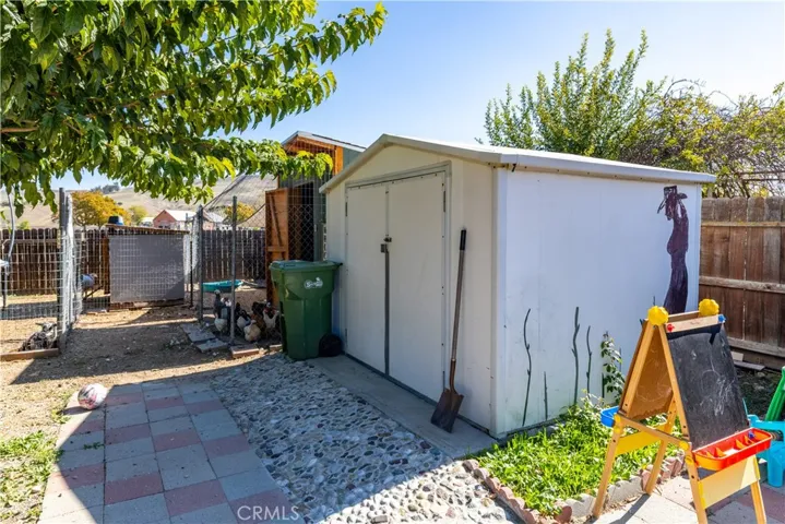 Charming single-level 3-bedroom, 2-bath home offering ~1,378 square feet of comfortable, airy living space with a great layout for everyday living & entertaining. The inviting front yard features a lovely lawn area, recently planted grapes, and a large shade tree that adds curb appeal and a touch of tranquility. Inside, you’ll find updated vinyl plank flooring throughout the main living areas, with carpet in the bedrooms and tile in the bathrooms. The bright and open living room flows seamlessly into the kitchen and dining areas, creating a warm and welcoming atmosphere. The kitchen offers a gas range, refrigerator, and a convenient island with a breakfast bar – perfect for casual dining or gathering with friends. A sliding door off the dining area leads out to the backyard for easy indoor-outdoor living. The large primary suite offers a private retreat with its own sliding door to the backyard, a walk-in closet, and an en suite bathroom. The spacious backyard is a true highlight, featuring a covered patio with stamped concrete and pavers, raised gardening beds, a chicken coop, mature trees, and a handy storage shed – plenty of space to relax, garden, or play. Additional features include a 2-car garage in the charming community of Shandon.
