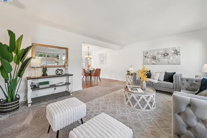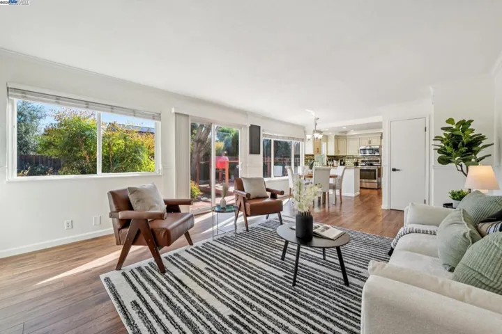 On a quiet cul-de-sac in Pleasanton’s Del Prado neighborhood, this upgraded 5BD/2.5BA contemporary offers easy California living – and membership in the Del Prado Cabana Club pool! A sunlit foyer with a high ceiling welcomes you to the 2310 SQFT home, leading to the living room with cozy fireplace, and beyond to the dining room with sliding doors onto the spacious deck for gracious indoor/outdoor living. The heart of the home is the updated kitchen with adjoining den with nearby powder room, and backyard access. Enjoy cooking in the spacious kitchen while family and friends gather around. In the expansive backyard, enjoy dining on the deck, unwinding in the hot tub, entertaining on the patio, or playing throughout the yard. Upstairs find the large primary suite featuring a huge walk-in closet and lovely ensuite bath. The additional four bright bedrooms have roomy closets and share a full bath. The oversized, 1,000+ sq. ft. garage accommodates four cars and includes a workshop, with gated RV or boat parking on both sides. With its size and layout, it also offers excellent potential for an ADU conversion. Nearby are top-rated schools, scenic trails, beautiful parks, and convenient BART and tech shuttle stops.