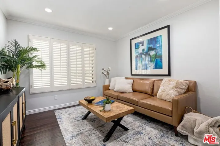 Experience the best of Santa Monica living in this stylish & sophisticated Townhome that truly feels like a private home. Ideally situated south of Montana Ave & moments from the ocean, cafs, restaurants & boutique shopping. Rare features include a spacious Den, Loft/Office, 2 private outdoor spaces & a private garage with direct access. Designed with a flowing open floor plan, the sunken living room features a marble fireplace & cozy reading nook, with the dining area centrally connecting the living room, kitchen & den. The private enclosed front patio creates seamless indooroutdoor living, ideal for entertaining or everyday enjoyment. The kitchen is appointed with granite counters, SS appliances & custom tilework. The spectacular primary suite impresses with soaring 35-ft wood-beamed ceilings, fireplace, walk-in closet, charming window seat & a generous loft/office overlooking the room. From the loft, step out to a private rooftop deck with palm-tree views, a peaceful escape for morning coffee or sunset lounging. A second en-suite bedroom offers comfort for guests or family. Additional highlights include in-unit laundry room, hardwood floors, plantation shutters, central AC, recessed lighting, powder room & tons of storage. Extremely low HOA dues. A truly hard to find combination in this coveted location.