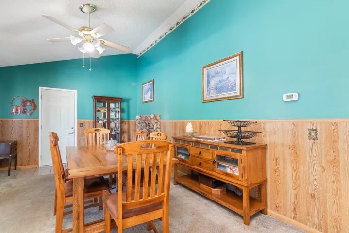 The dining rooms offers ample space for entertaining and sliding door that leads into the covered patio and sparkling swimming pool. The kitchen offers cabinetry with pull out drawers and bay window with view to the backyard.