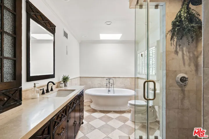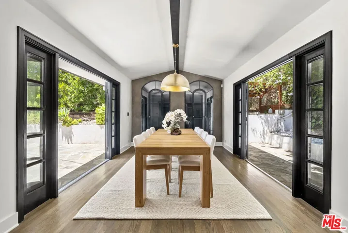 Tucked behind private gates at the end of a quiet drive, this reimagined Beverly Hills retreat embodies the essence of modern California living. Beyond the garden wall, the estate opens to a park-like sanctuary surrounded by mature trees, curated landscaping, and complete privacyan atmosphere that feels worlds away, yet just minutes from the heart of Beverly Hills.Recently and thoughtfully redesigned, the home embraces a bright, contemporary floor plan with effortless indooroutdoor connection through expansive French doors. Vaulted, beamed ceilings and skylights bathe the interiors in natural light, creating an elevated yet relaxed ambiance throughout.The spacious living room centers on a striking fireplace and wide-plank hardwood floors that flow seamlessly to the outdoor terraces. The residence offers three bedrooms and three baths, including a serene primary suite with a sitting area, fireplace, dry sauna, and an oversized walk-in closet. The spa-inspired bath features a soaking tub, steam shower, and dressing area rivaling a luxury resort.At the heart of the home, the chef’s kitchen is outfitted with stone countertops and professional-grade appliances, opening to a sunlit dining area perfect for everyday living and entertaining.Altogether, this private, design-forward estate captures the romance of indoor/outdoor California living refined, tranquil, and moments from the best of Beverly Hills.