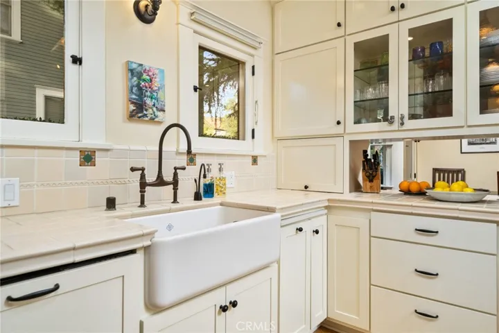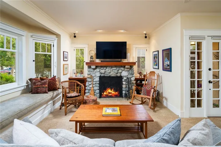 Located in the heart of The Historic Claremont Village, this exceptional residence has been thoroughly refurbished by renowned design/build firm, Hartman Baldwin, masterfully blending early 20th-century character with modern living. The front yard is a peaceful retreat surrounded by lush greenery that frames the property in a sense of calm privacy. A screened front patio leads to the front entrance, setting the tone for the thoughtful design within. Inside, natural light fills the home through large windows seamlessly connecting the interior and the gardens beyond. The living room is a beautiful space anchored by a reading nook that overlooks the front yard. An impressive fireplace finished in Baldy firestone with a handcrafted cherry mantel adds warmth and architectural distinction. A private study offers a quiet place for work or reading, enclosed by custom doors and surrounded by windows. The dining room features a statement chandelier, large windows, and cork flooring that continues into the kitchen. Rooted in its 1922 architectural heritage, the kitchen is a remarkable showcase of craftsmanship and thoughtful design. Expansive in layout, it features handmade counter tiles from Mission Tile West in Pasadena, custom cabinetry with ample storage, and distinctive lighting. Modern updates, including a refrigerator with custom cabinet fronts that blend seamlessly into the design, preserve the kitchen’s original character while elevating its functionality. The main residence offers two bedrooms, an office, and two remodeled baths. The primary suite is spacious with a connected retreat area ideal for lounging or quiet reflection. A walk-in closet provides functional storage, while French doors open to the backyard, extending the living experience outdoors. The backyard is an inviting extension of the home. A deck crafted from Douglas fir and redwood overlooks the lush landscape, creating a peaceful setting for morning coffee or evening gatherings. The gardens are rich with mature plantings and attract frequent visits from songbirds, adding to the tranquil atmosphere. Multiple seating areas invite relaxation throughout the yard, and a cedar hot tub provides year round enjoyment. Completing the property is a detached cottage designed with the same attention to detail as the main home. The cottage includes a living room, full kitchen, a remodeled bathroom, and a comfortable bedroom, offering an ideal space for guests, extended family, or use as a private studio.