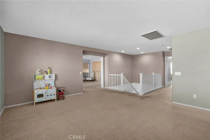 Upstairs, an open railing staircase leads to a huge loft — ideal for a game room or secondary living area. The extra-large primary suite offers double-door entry, a luxurious bathroom with dual sinks, soaking tub, walk-in shower, and an expansive walk-in closet. Three additional bedrooms upstairs each feature their own walk-in closet and share a well-appointed bathroom with dual sinks.