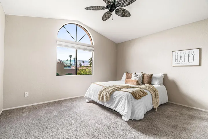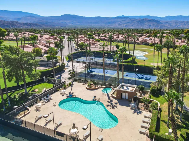 Welcome to this beautifully 2 bedroom, 2 bath and a powder room condominium in the sought-after Oasis Country Club. Positioned with a south-facing back patio overlooking the 13th hole, this residence captures gorgeous views of the lush green fairway, tranquil pond with a fountain, and the majestic mountains beyond–a truly picturesque and serene setting. Upstairs, you’ll find two large bedroom suites, each with its own private bath, offering exceptional comfort and privacy. A spacious landing area provides abundant built-in storage, ideal for organization and convenience. The remodeled kitchen is both stylish and functional, featuring tasteful upgrades that complement the home’s inviting atmosphere. Additional highlights include direct garage access and fresh paint, and large tile flooring, creating a cohesive interior throughout. Outdoors, enjoy a private front courtyard and a back patio perfectly suited for relaxing or entertaining while taking in the golf course and mountain views. Also convenient for your dog. Within the gates of Oasis Country Club, residents enjoy access to an 18-hole, executive golf course, 18 pools and spas, pickleball and tennis courts, a fitness center, two dining venues, including casual and fine dining options with a bar and patio. The community also features citrus trees, a dog park, and a welcoming, active social atmosphere–all within a low-maintenance, non-age-restricted environment. ”Come and see what makes Oasis Country Club such a treasured place to live.
