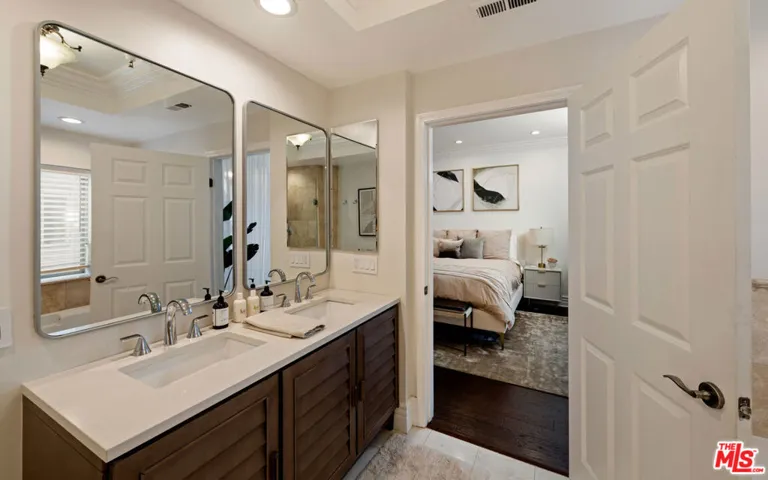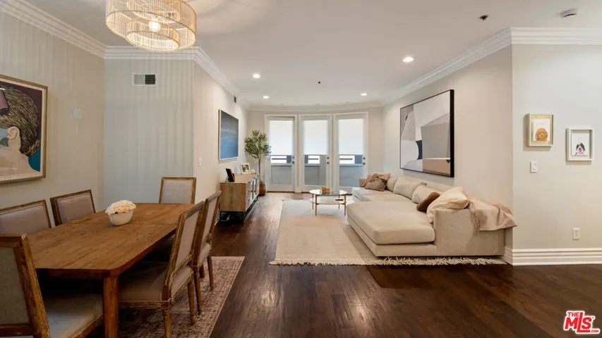This beautifully appointed 2-bedroom, 2-bath, 1,569 sq. ft. condo sits on a quiet, tree-lined street in one of West LA’s most coveted neighborhoods. Recently remodeled, it blends the comfort of a 5-star hotel with the convenience of being just moments from Westwood Village and Century City.Set within a secure, newer-construction Mediterranean building, residents are welcomed through an elegant open-air courtyard with a charming fountainan immediate glimpse of the lifestyle within. Inside, a formal foyer opens to a spacious kitchen, family room, and living area designed for both everyday comfort and effortless entertaining.Two bedrooms are thoughtfully placed on opposite ends of the home, including a primary suite with abundant closet space, a spa-like bath with soaking tub, and direct access to the expansive covered patio. Every main room flows outdoors, creating a seamless indoor-outdoor experience perfect for morning coffee or evening gatherings.Rich hardwood floors, crown moldings, graceful arches, and beautifully restored tilework are enhanced by tall ceilings, natural light, and luxurious finishes. Residents enjoy a well-managed, secure community with gated underground parking (two tandem spaces plus guest parking).Whether savoring quiet mornings on your patio or stepping out to LA’s premier shopping, dining, and cultural destinations, this home offers a lifestyle where every day feels elevated.Additional note: A new premium elevator was installed on 11/6/2025, enhancing convenience and value within this Mediterranean-inspired community.