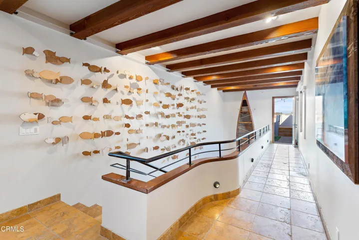 Welcome to your dream Beachfront house, perfectly nestled on the sands of beautiful Mandalay Beach. This gem is situated on a semi-private street, west of the main beachfront road, ensuring less car and foot traffic for a peaceful, beachy vibe. Positioned on a west-facing beach, the house offers breathtaking sunsets every evening. Enjoy panoramic 180-degree views of the ocean, islands, whitewater, and coastline, stretching across the Santa Barbara channel to the Channel Islands and the Ventura coastal foothills. Step into the gourmet kitchen, a chef’s paradise, featuring a center island, a 48-inch Viking cooktop, a Viking double oven, and a built-in Subzero refrigerator. The first level dazzles with a wall of windows that open fully to a spacious deck, providing direct access to the sand and creating an inviting indoor-outdoor living experience. The family room exudes coastal charm with high vaulted beamed ceilings and a cozy fireplace. This level also offers three bedrooms and three baths, along with a den off the kitchen that could serve as an optional sixth bedroom. The second level is dedicated to a generous primary suite, featuring a fireplace and a private deck. The primary bathroom is a sanctuary with a jetted tub, steam shower, fireplace, and, of course, stunning ocean views. For an unforgettable evening, head to the rooftop deck to marvel at the starry skies, making it the perfect spot to entertain and relax while savoring the refreshing ocean air.The home boasts 3-zone radiant heating and a rare 6-car garage, ensuring comfort and ample space. This Beachfront beauty offers an unparalleled coastal living experience with spectacular vistas and serene surroundings. Don’t miss your chance to own this slice of paradise!